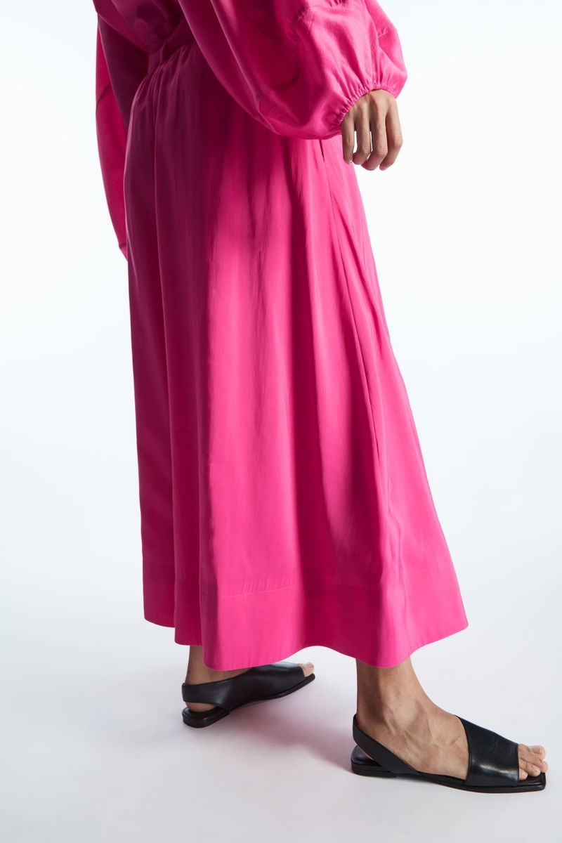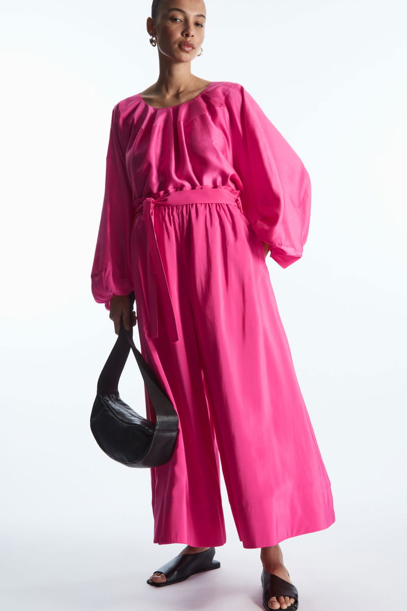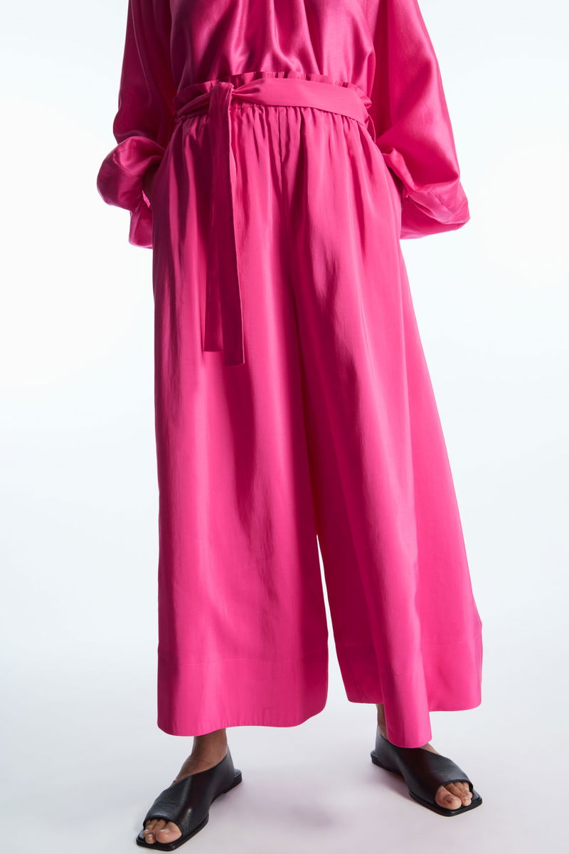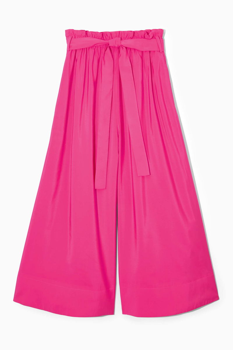 These culottes make a sartorial statement – note the vibrant bright-pink colour and voluminous silhouette. Crafted from TENCEL™ Modal that's made from sustainably sourced beechwood, they feature wide legs and an elasticated waistband that gathers to create a paperbag effect.