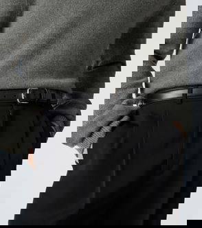 A modernised daily essential. Crafted from leather with a slight grained texture, this belt is reworked with perforated holes throughout.