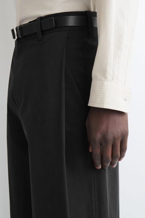 The menswear team reinterpret classic tailoring for the modern uniform. Made from soft cotton-blend twill, these trousers are cut in a relaxed, wide-leg shape and designed with belt loops, pintucked detailing and pleating at the waist. Style them with trainers or Derbies.