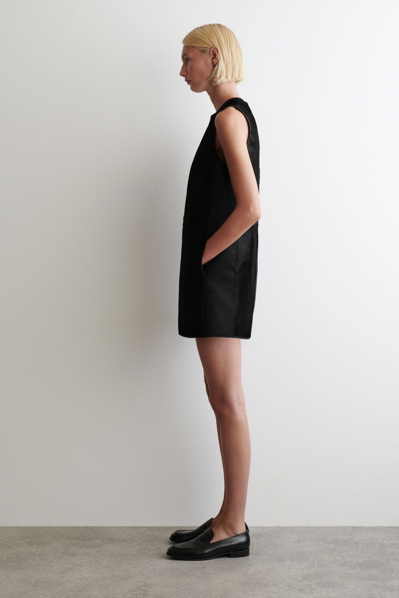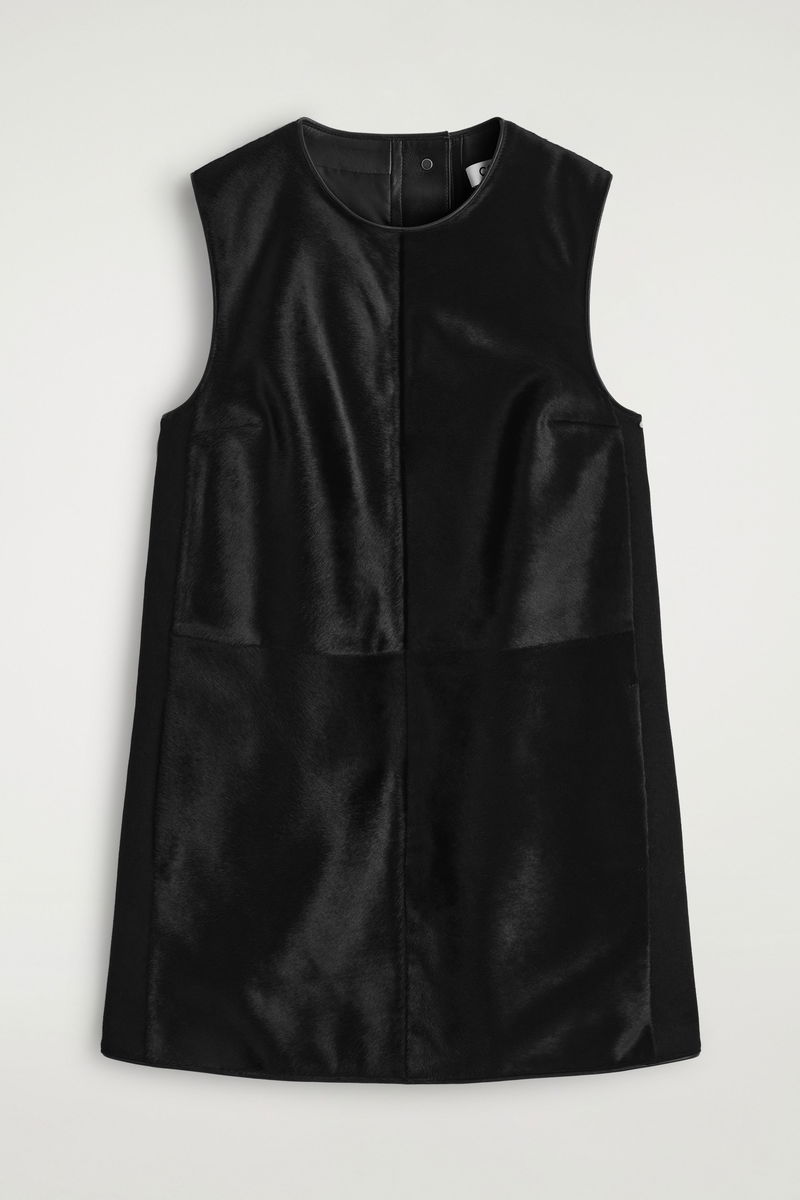 For Autumn Winter 2025, the womenswear designers interpret '60s silhouettes with a renewed appeal. Rendered in a glossy black tone, this shift dress is made from tactile pony hair-effect leather and features tonal panelling and bonded-leather edges for a premium finish. Highlight the mini length by styling it with knee-high boots.