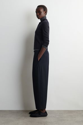 Offered in a chocolate mélange hue, these trousers are made from a tactile merino-wool blend and cut in an effortless wide-leg shape that's suited to weekends in the city. They feature an elasticated waistband and a five-pocket design that's inspired by denim.