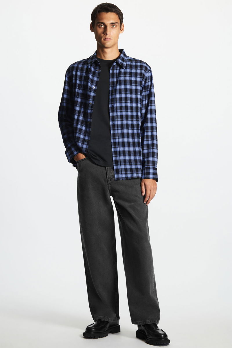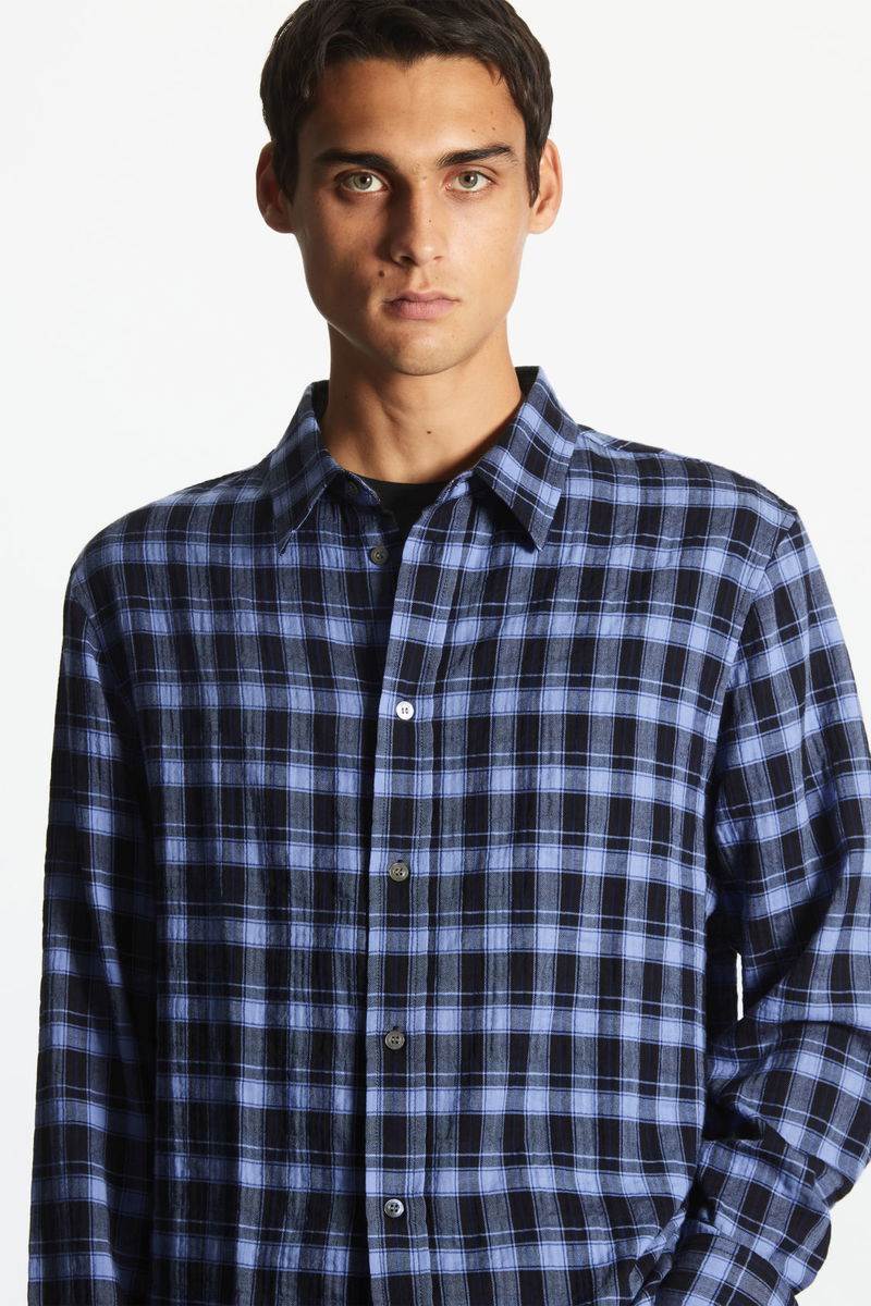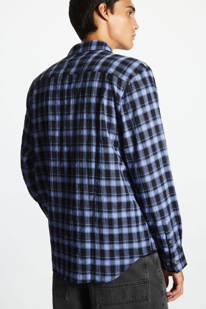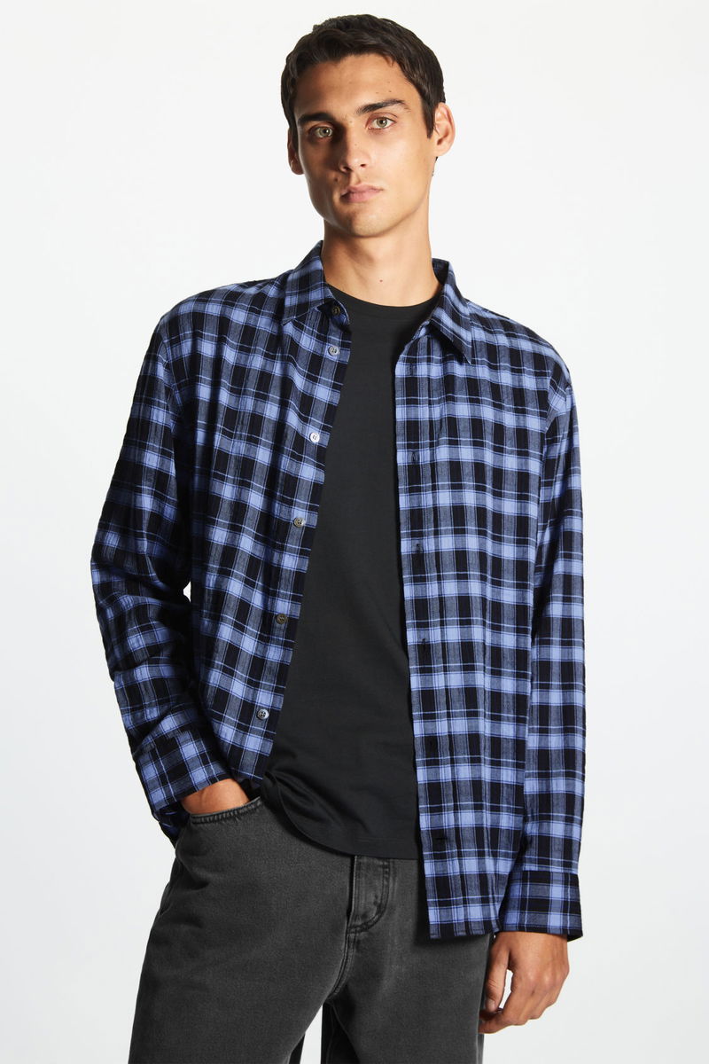 A checked shirt is a perennial wardrobe staple, and this blue one is crafted from cotton enhanced with a touch of stretch for comfort. It's cut for a relaxed fit and has a pointed collar, long sleeves and a buttoned placket.