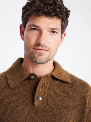 Made from organic cotton in light beige, this long-sleeve, knitted polo shirt is cut for a relaxed fit with a loose sleeve for a laidback look.