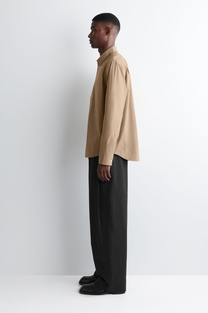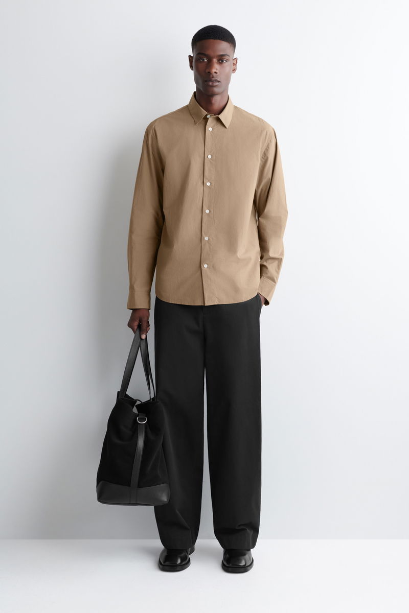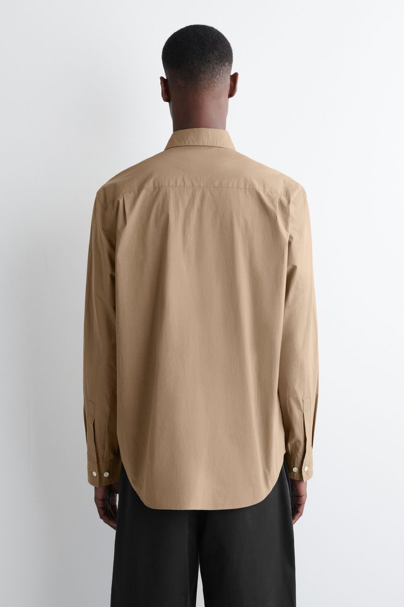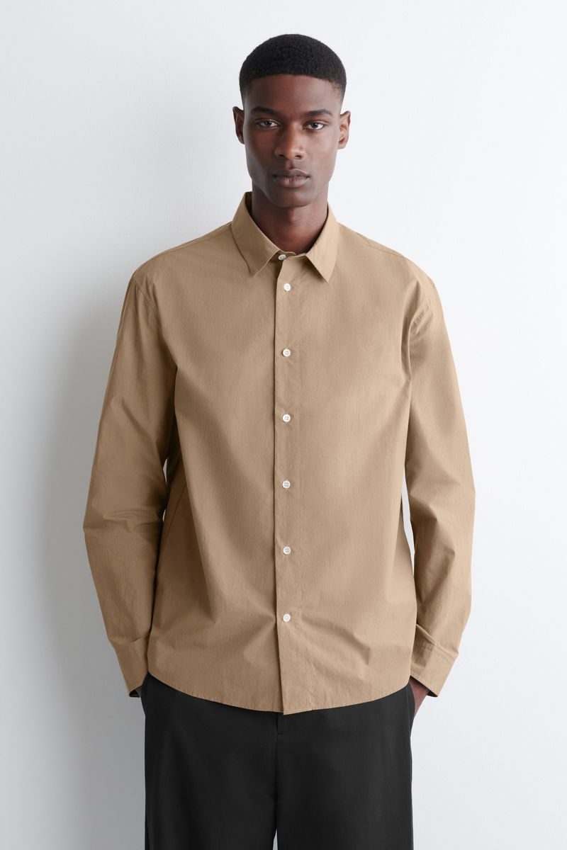 This long-sleeved shirt promises to be a wardrobe staple throughout the year. Offered in a camel-beige hue, it's crafted from naturally breathable Pima cotton-poplin and tailored in a relaxed shape – wear it solo or open over a tee for a contemporary take on layering.