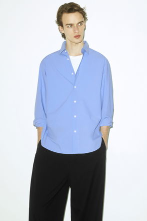 This long-sleeved shirt promises to be a wardrobe staple throughout the warmer months. Offered in a sky-blue hue, it's crafted from naturally breathable Pima cotton-poplin and tailored in a relaxed shape that won't cling in balmy weather.