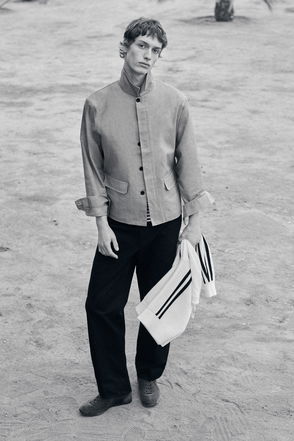 This pinstriped shirt offers a refined option for the daily wardrobe. It's crafted from soft cotton and RWS wool-blend jersey and designed with a chest pocket and buttoned cuffs. The ribbed collar can be worn open or fastened to the top. Style it with the matching trousers.