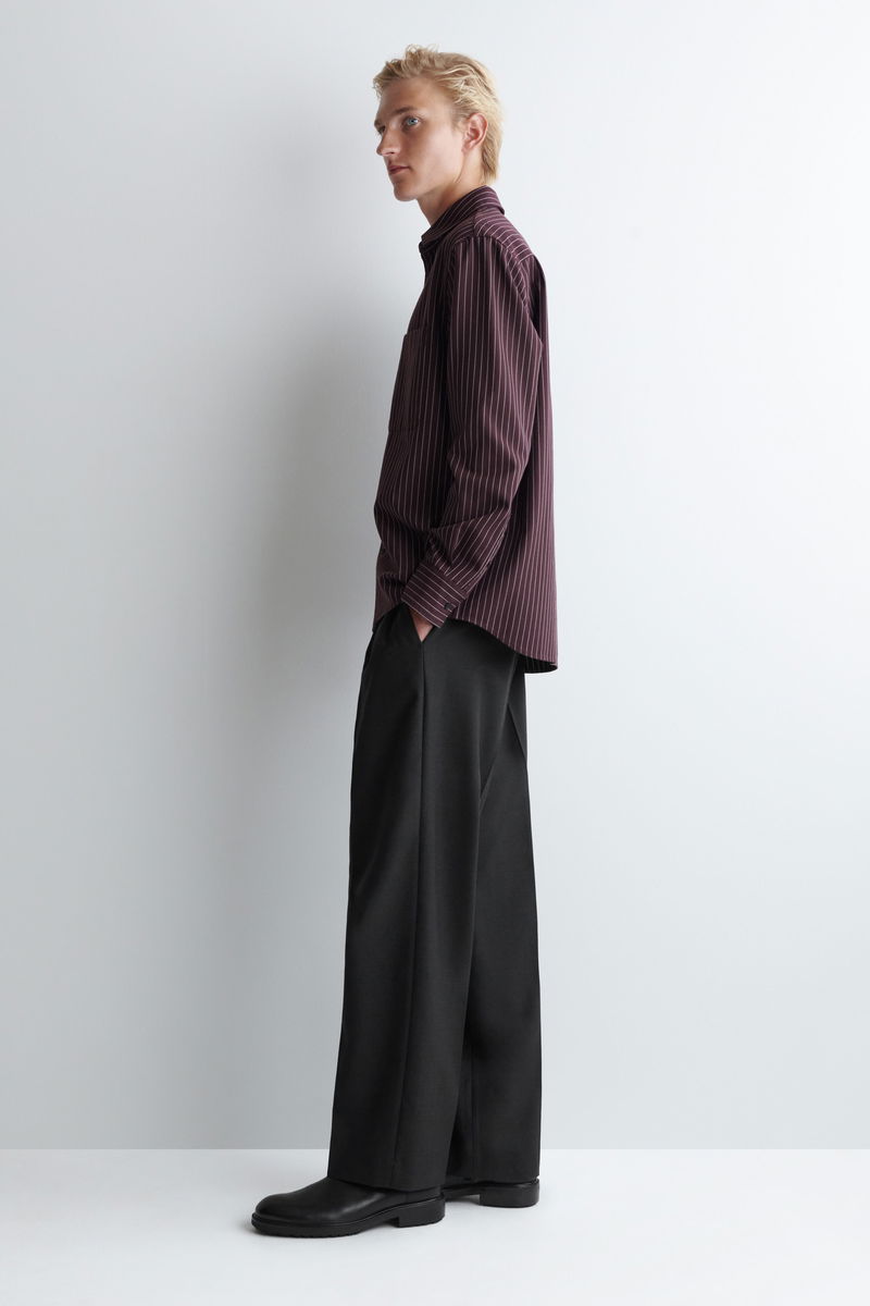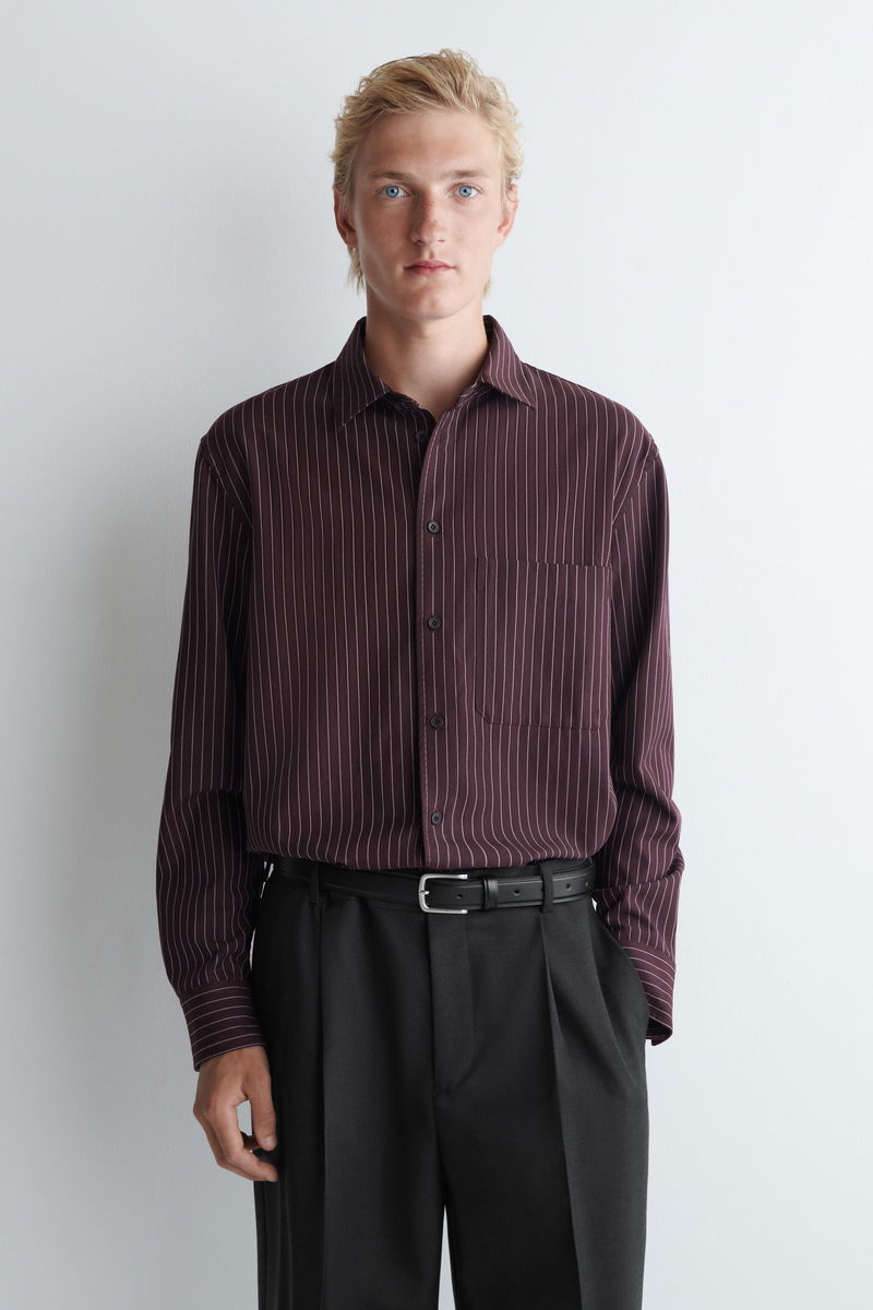 Perfected wardrobe staples anchor the COS menswear collection. This sage-green shirt is made from lightweight TENCEL™ Lyocell and cotton-blend twill and cut in a relaxed shape with a pointed collar and buttoned cuffs.
