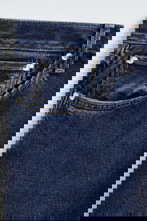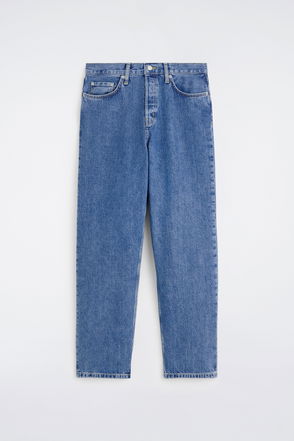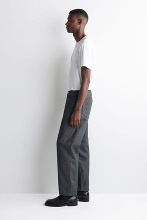 Sustainably crafted from organic and recycled cotton blend in a washed black hue and made without metal rivets for easy recycling. Move with ease in this roomiest style. A mid-rise fit that sits just below the waist, these full length, wide-leg jeans are generously cut through the leg and ankle.