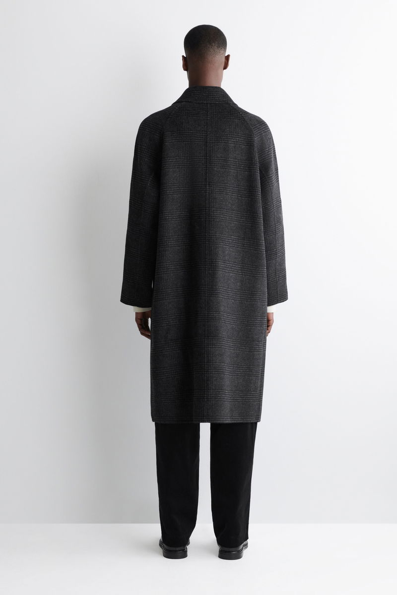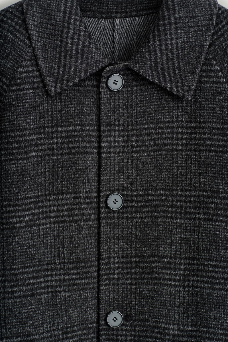 This piece is fully reversible – one side is patterned with Prince of Wales checks, while the other features a subtle herringbone motif.