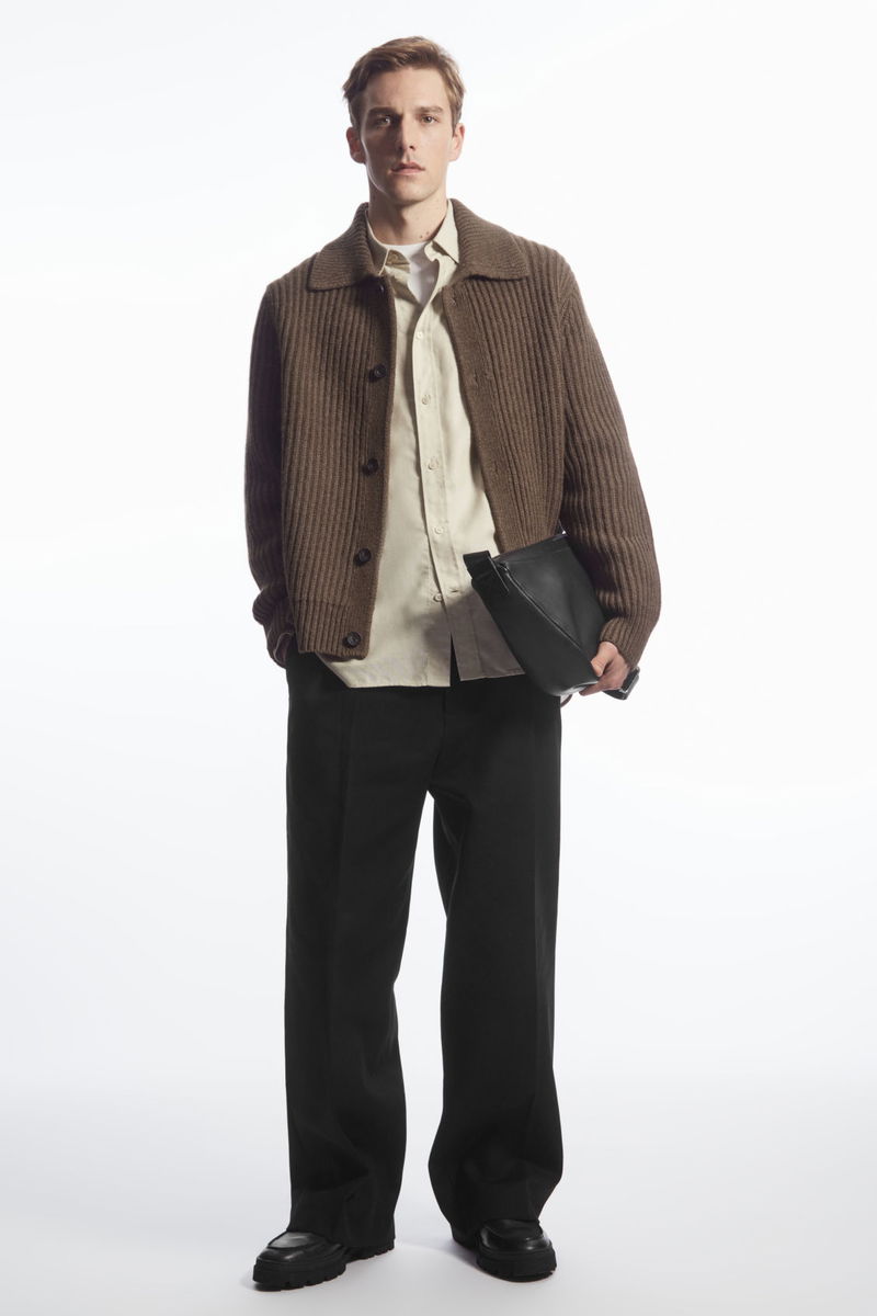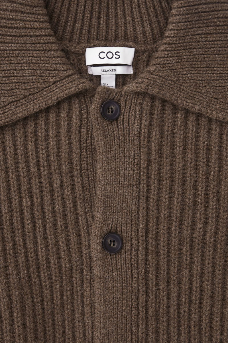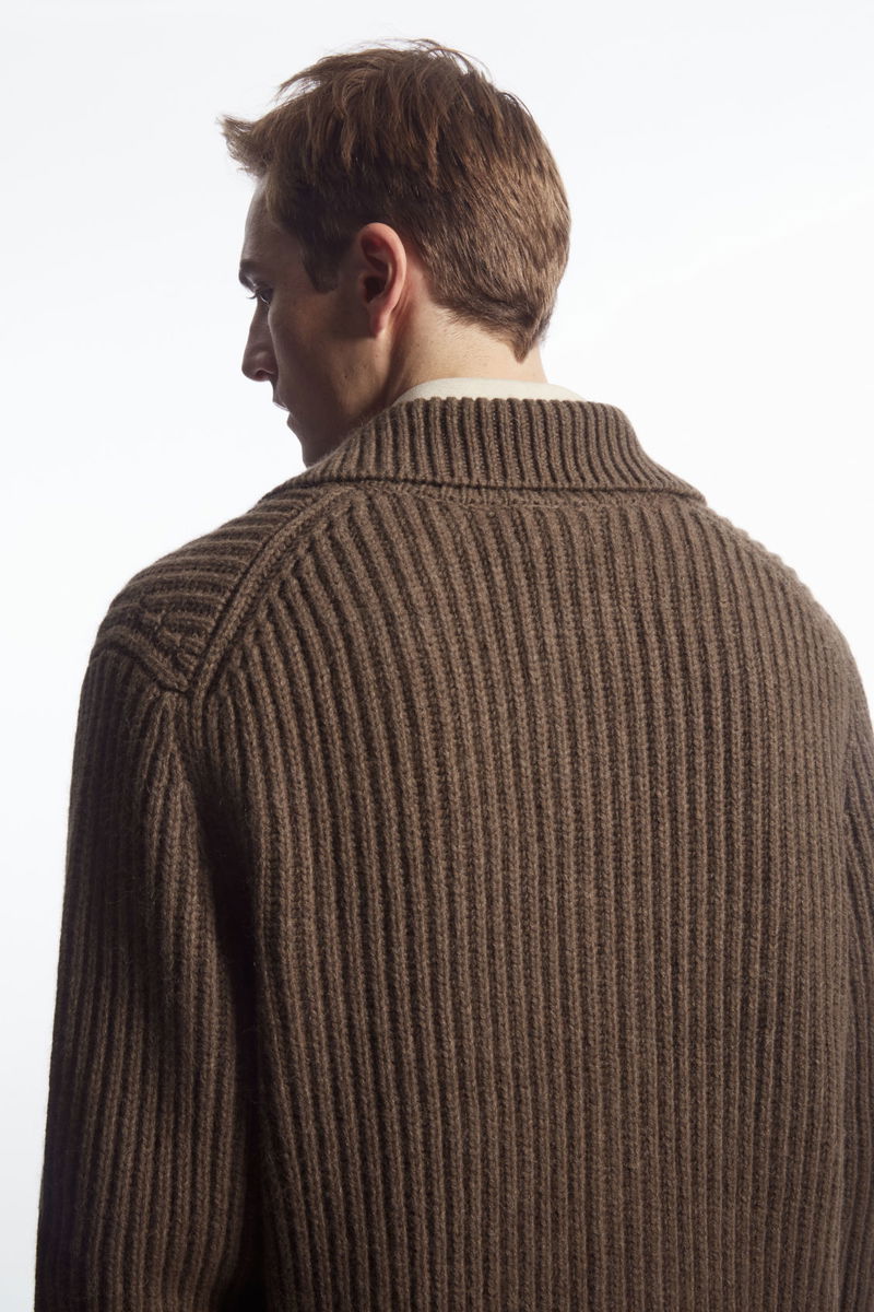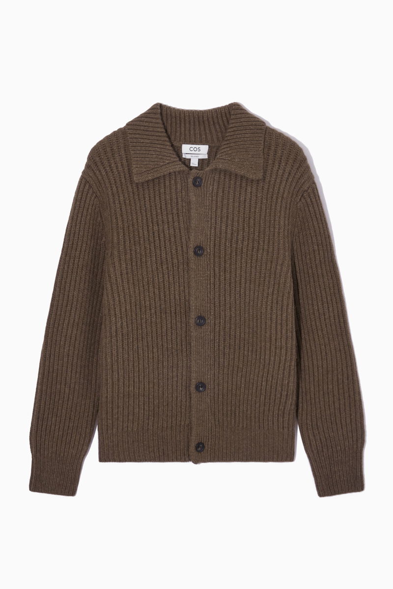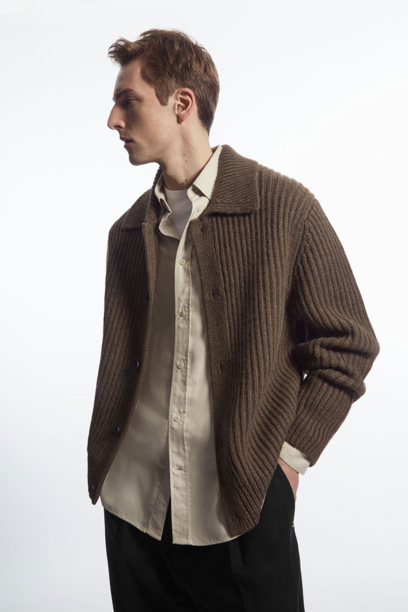 The change in season calls for impeccably made wardrobe staples like this rib-knitted cardigan. Offered in a versatile mélange-brown hue, it's crafted from a blend of alpaca, recycled wool and RWS-certified yarn, each chosen for its soft hand feel and natural warmth. It's designed with a spread collar and subtly contrasting buttons, which you can unfasten to show a T-shirt layered underneath.