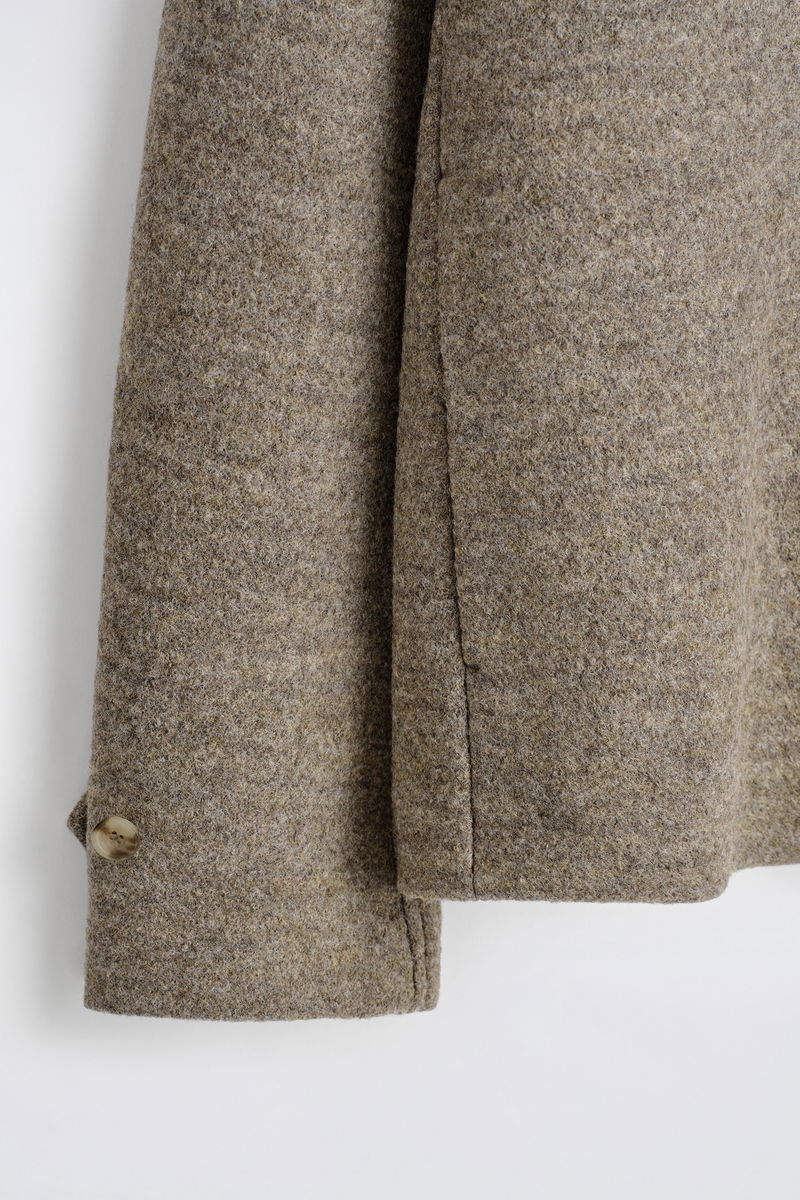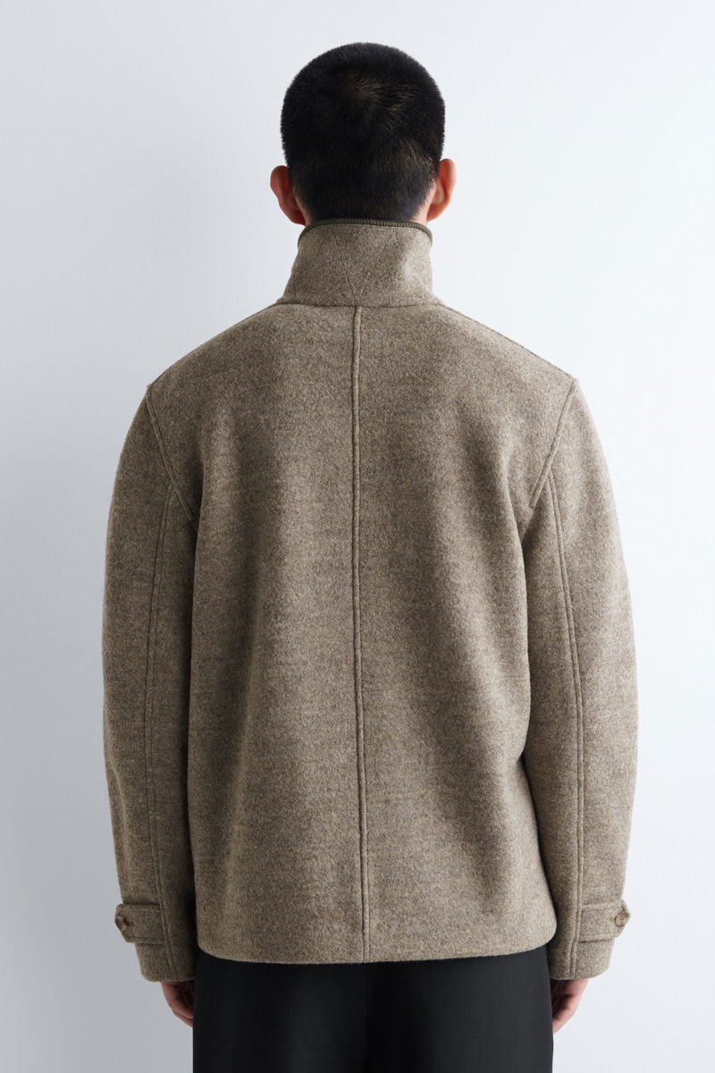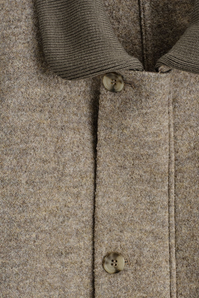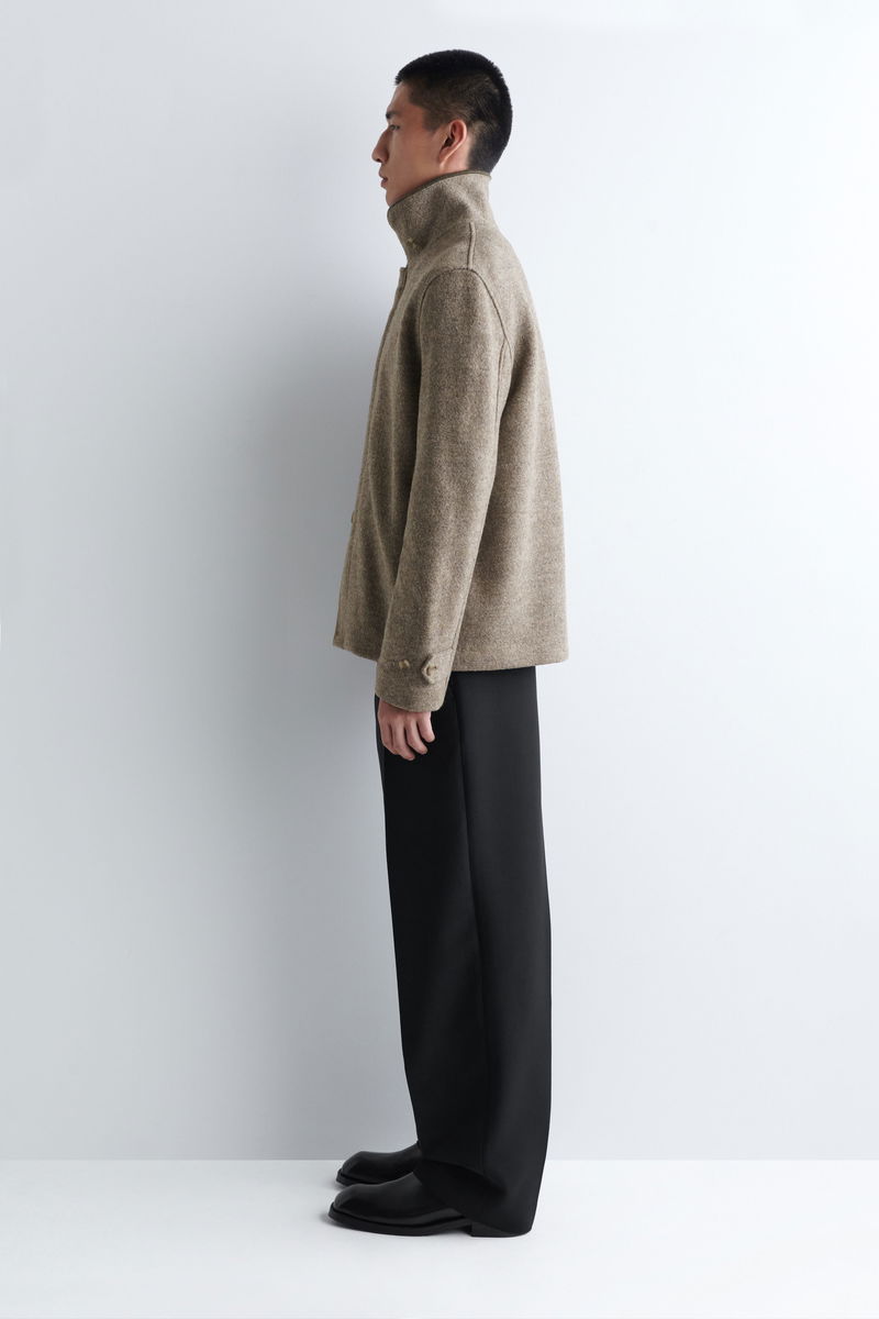 The boiled-wool jacket is a signature of the COS wardrobe. This modern piece is crafted from premium RWS wool and accented with a subtly contrasting ribbed-knit collar. It's cut in a relaxed shape and features buttoned cuffs and subtle side pockets.