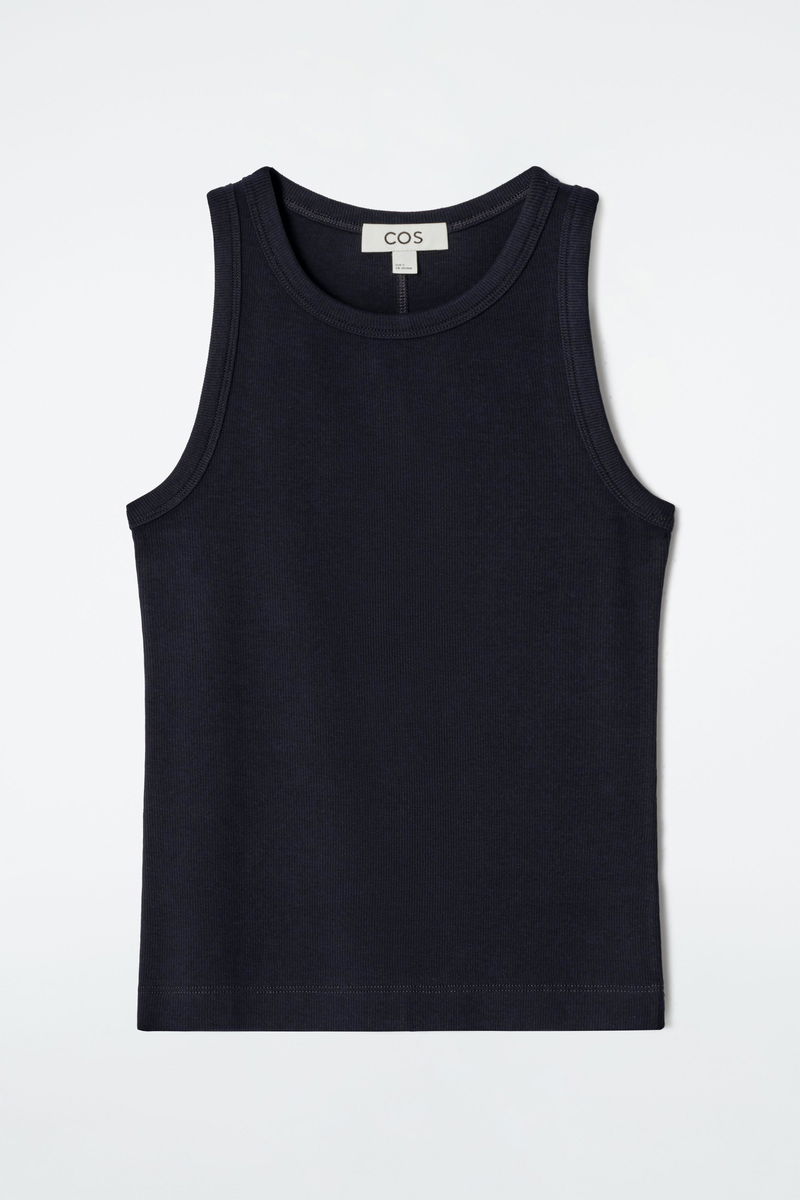 An understated essential, the COS tank top is a pillar of the capsule wardrobe. This piece is crafted from ribbed cotton-jersey with subtle stretch and cut in a slim fit that's perfect for layering. Wear it alone or style it under shirts and blazers.