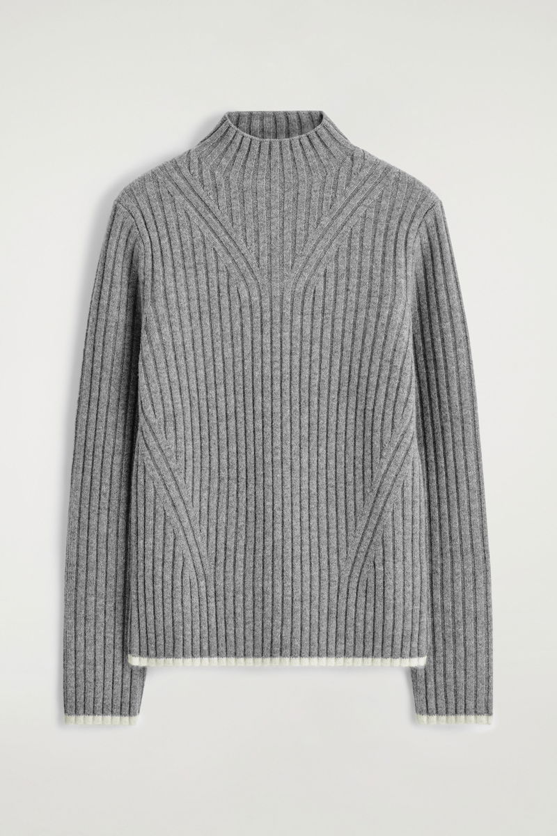 RIBBED WOOL FUNNEL-NECK JUMPER