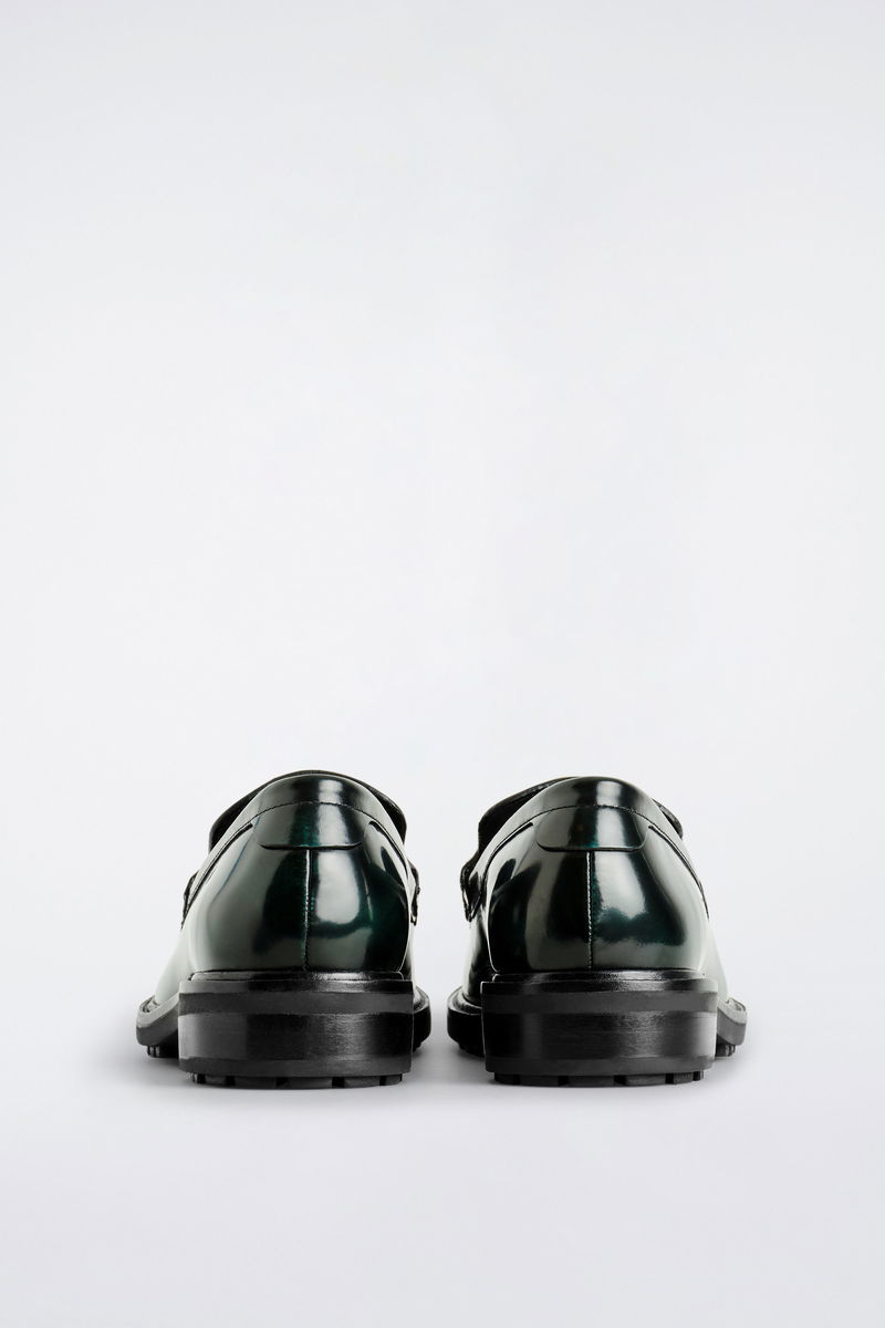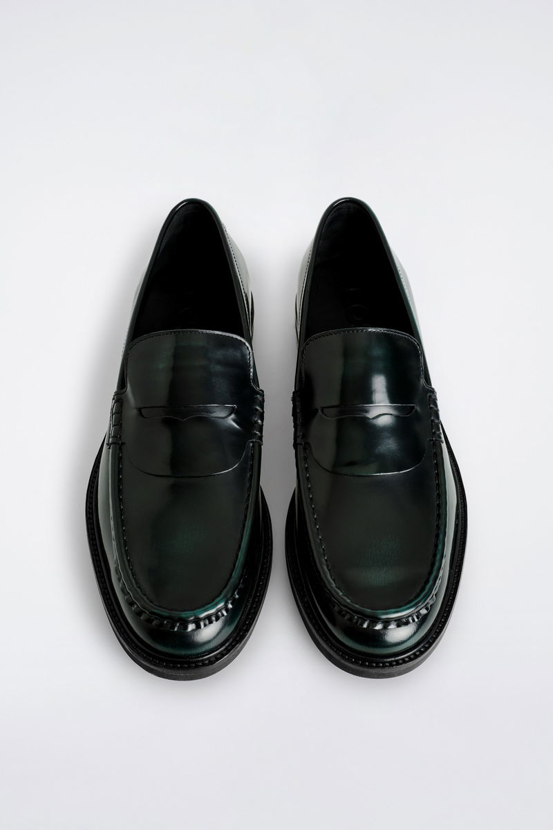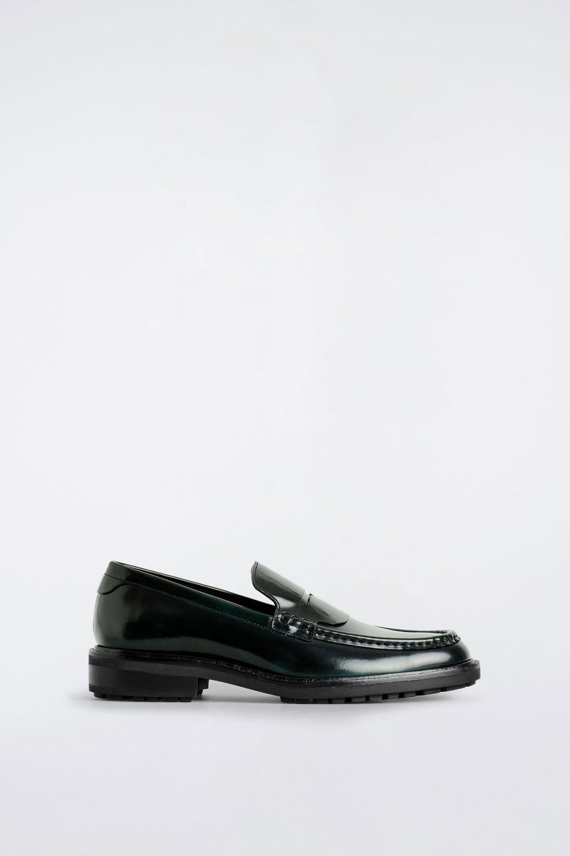 This season, the menswear team reimagine a storied wardrobe staple: the penny loafer. This bottle-green pair is expertly crafted from premium leather that's rubbed by hand, creating a nuanced patina that will get even more characterful with wear.