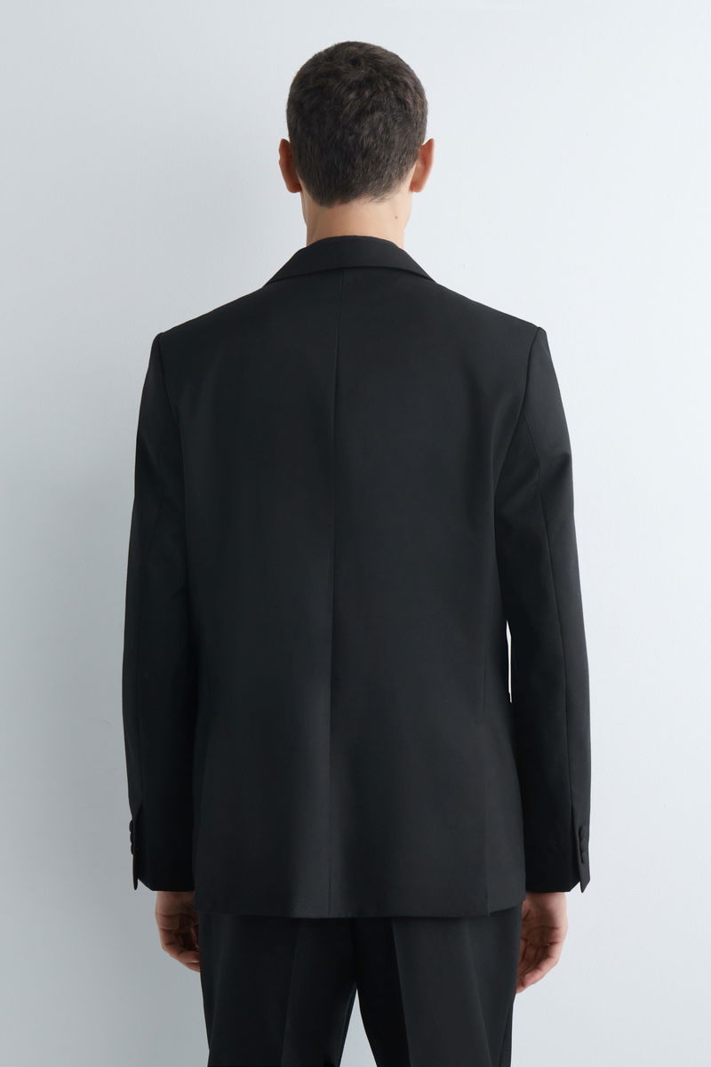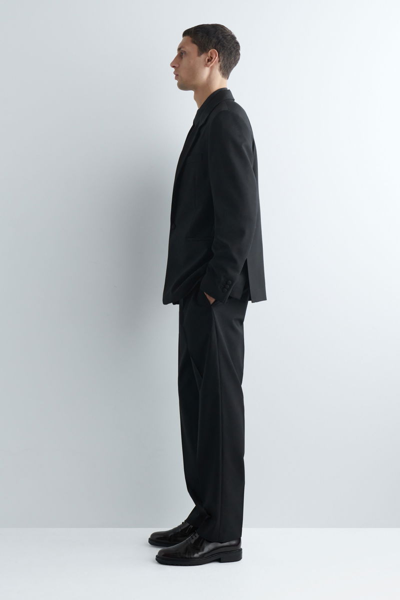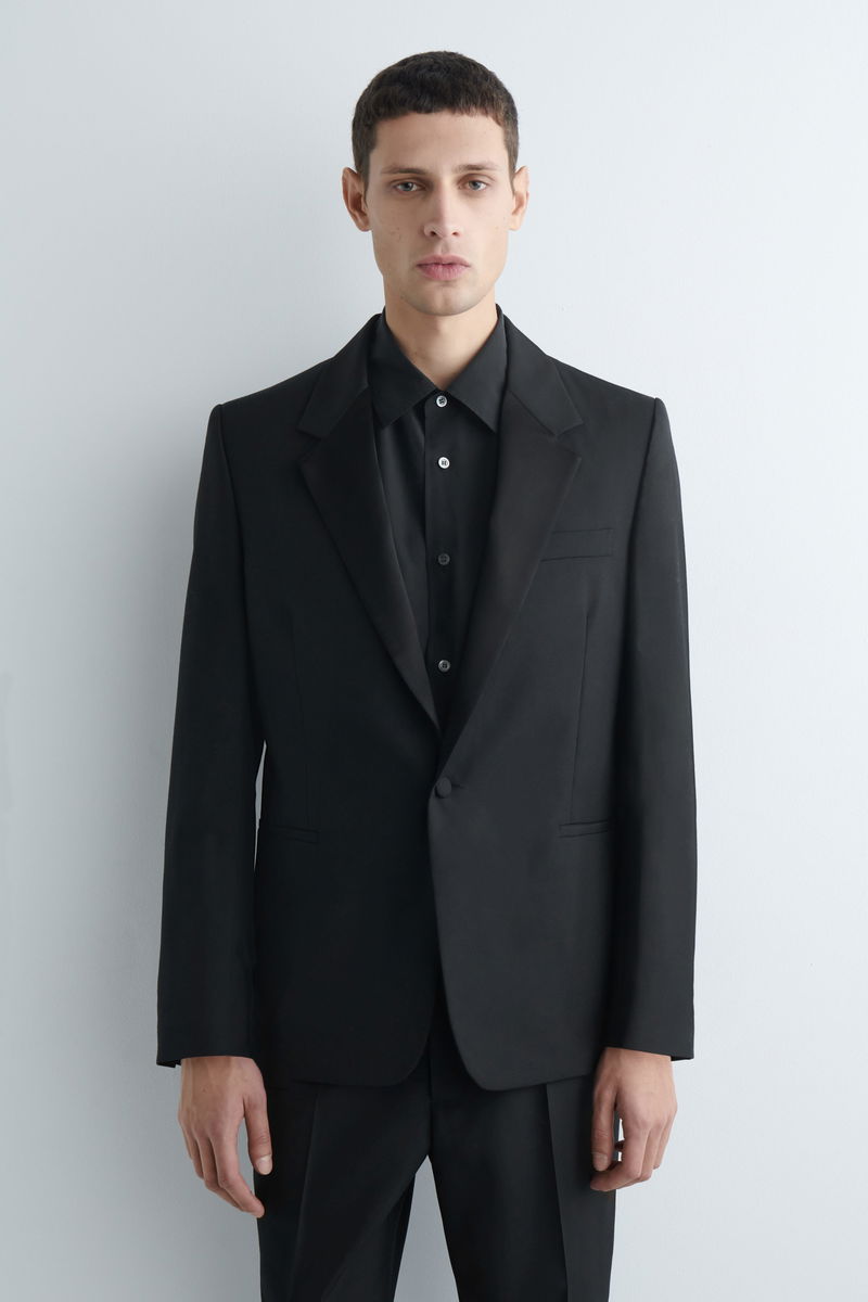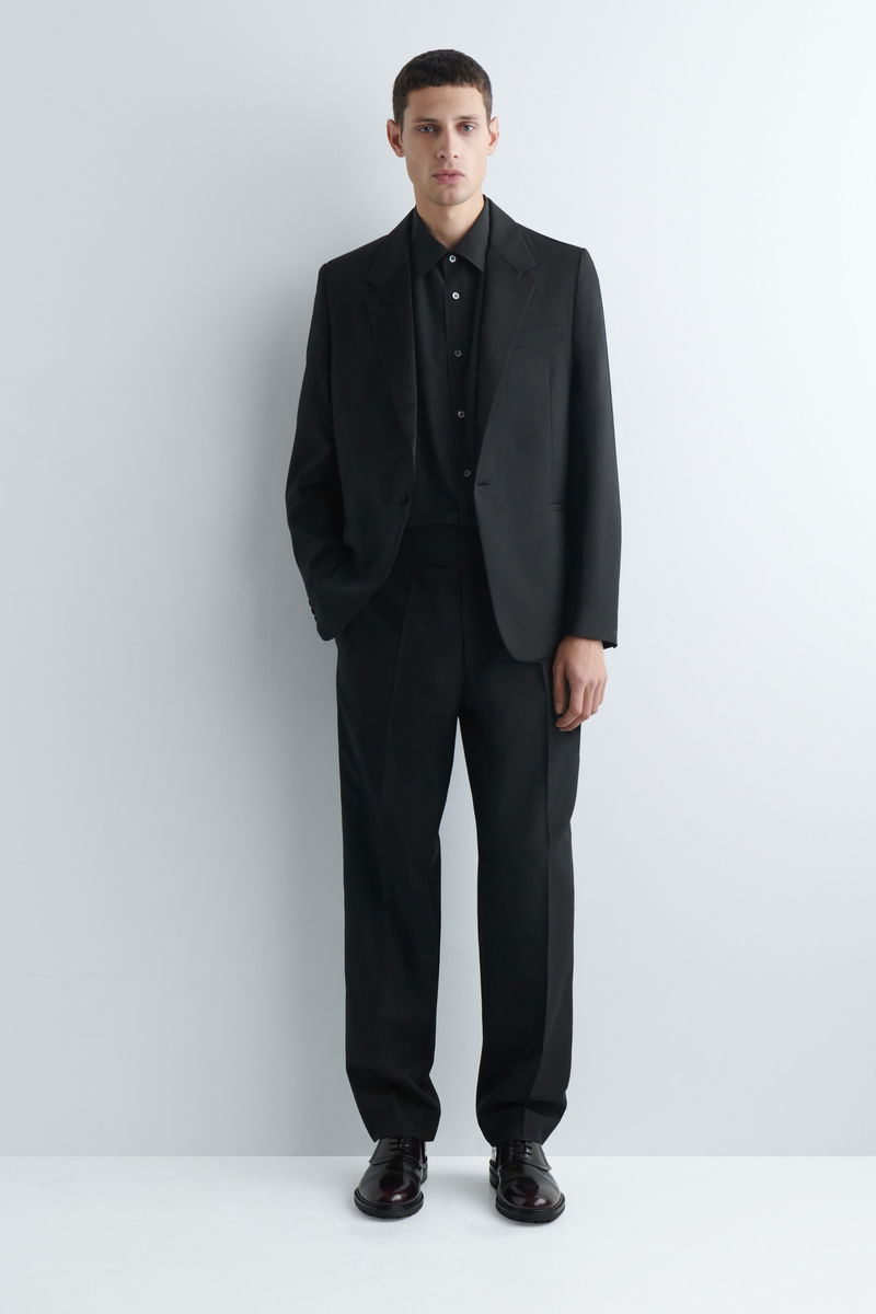 The COS tailoring collection spotlights classic pieces with a modern sensibility. Crafted from RWS wool, this blazer is cut in a single-breasted shape with darts at the waist, three welt pockets and notch lapels that are partly covered with colour-matched satin – nodding to storied suiting codes. Style it with the matching trousers.