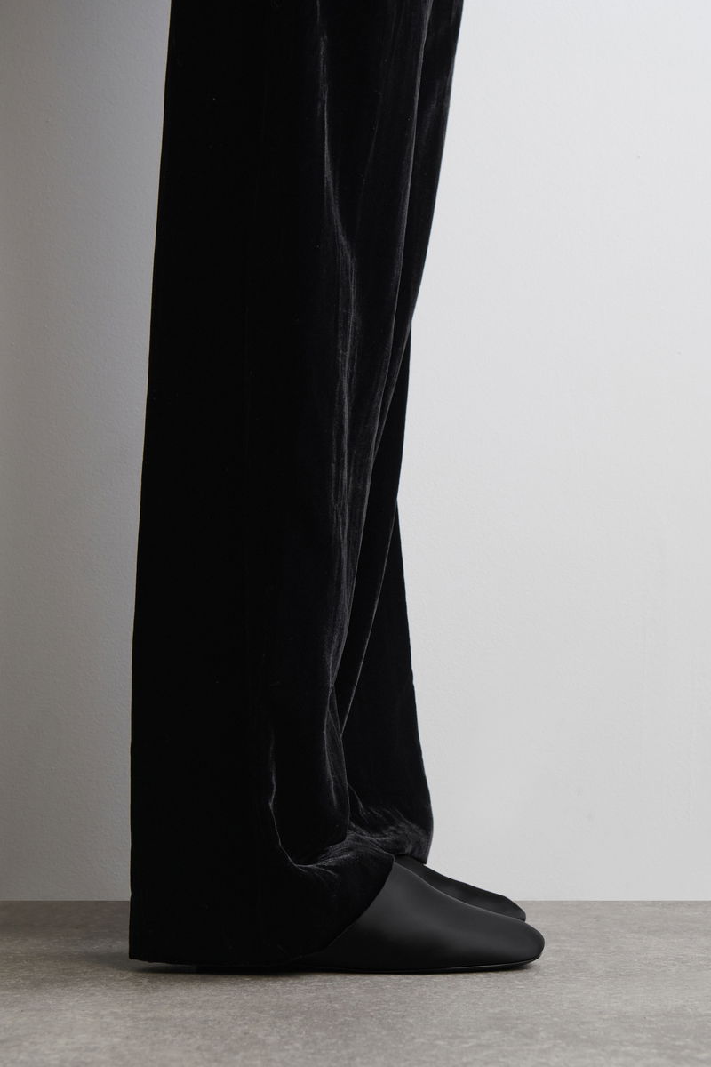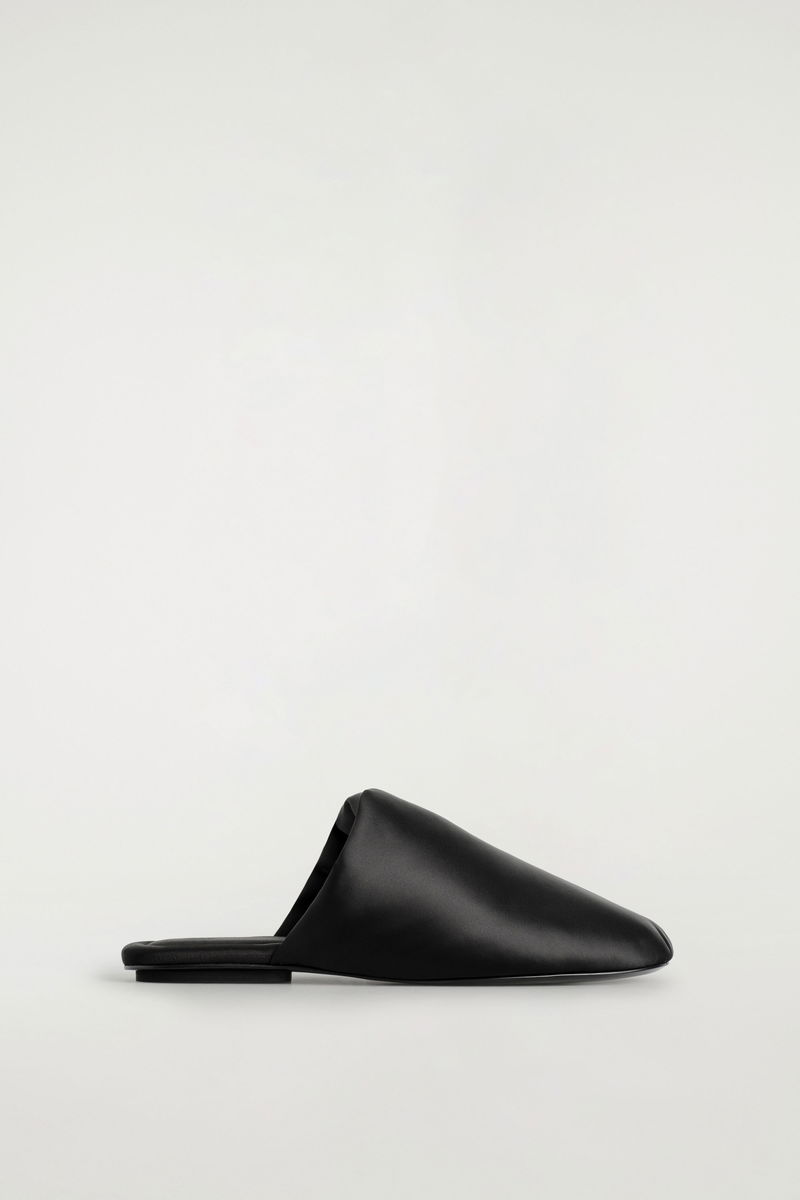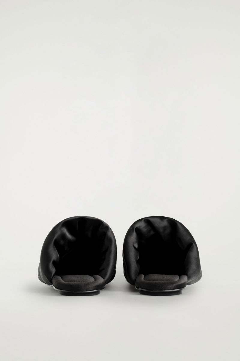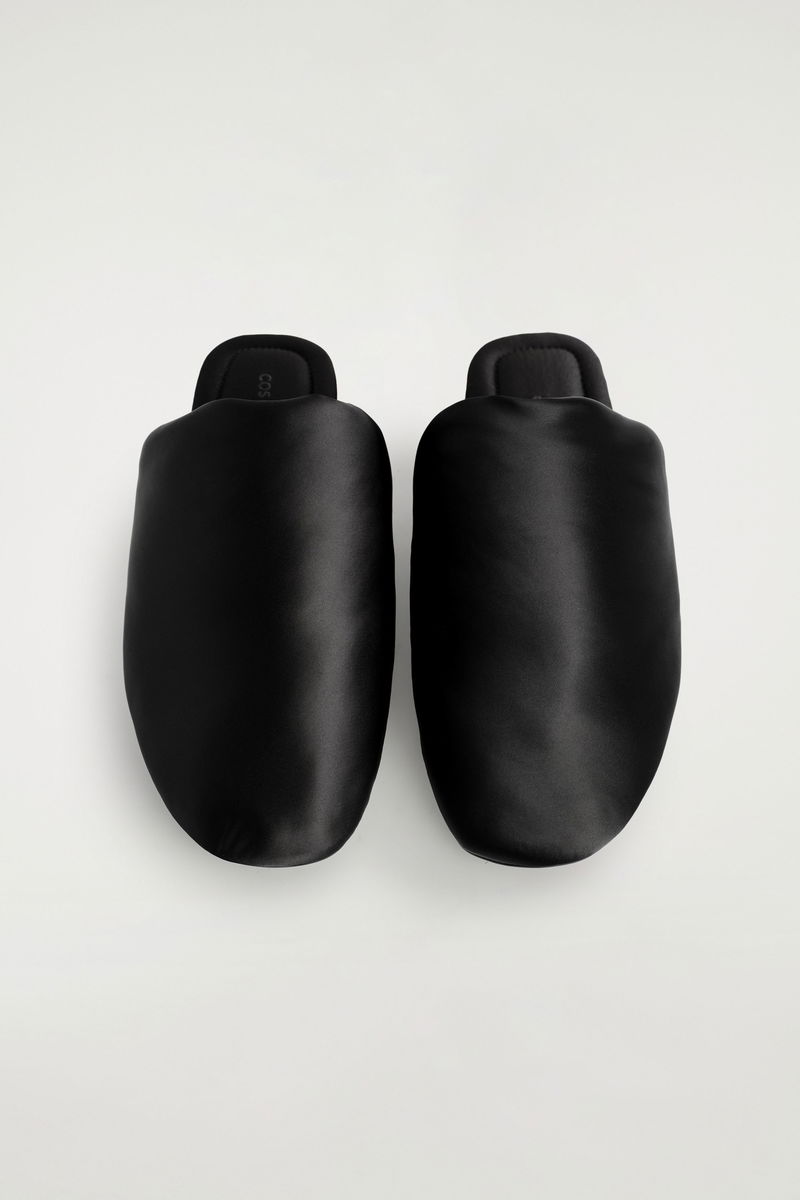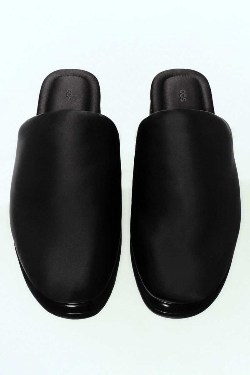 These luxurious mules blur the line between eveningwear and loungewear. Rendered in an enduring black tone, they're made from satin that has a subtle sheen and set on padded, non-slip soles for comfort. Style it with suiting for evening soirées.