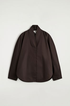For Autumn Winter 2025, the womenswear designers reimagine classic shirting with a modern femininity. Crafted from lustrous mulberry silk, it's rendered in a rich chestnut tone and features a tonal detachable scarf that's secured by a concealed loop at the nape.