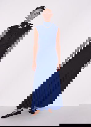 Rendered in timeless navy, this elegant maxi dress is designed with a tonal scarf that wraps effortlessly around the neck. It's cut in a relaxed shape and knitted from NATIVA™ wool that's warm and soft to the touch.