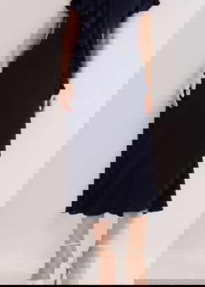 This understated midi dress proposes an effortless take on eveningwear codes. It's crafted from fluid viscose in a midnight-navy hue and has a sculptural shape that drapes effortlessly at the back. Style it with kitten heels.