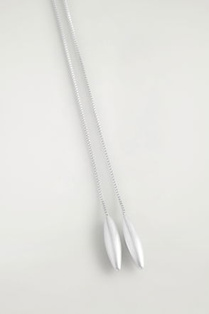 Suspended from a silk ribbon, this necklace features a silver-plated recycled-brass pendant that's sculpted in the natural shape of a shell. The softly curved charm is designed to be detached and clipped onto belt loops or a bag.