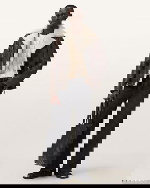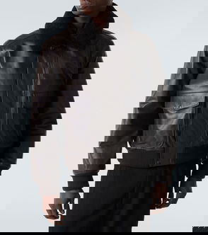 This season, the womenswear team offer a modernised take on a wardrobe classic: the leather flight jacket. This piece is crafted from supple chrome-free hide and designed with a luxuriously soft shearling interior that is echoed on the collar. The relaxed shape and double-ended zip lend it to effortless layering.