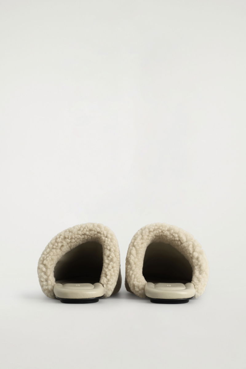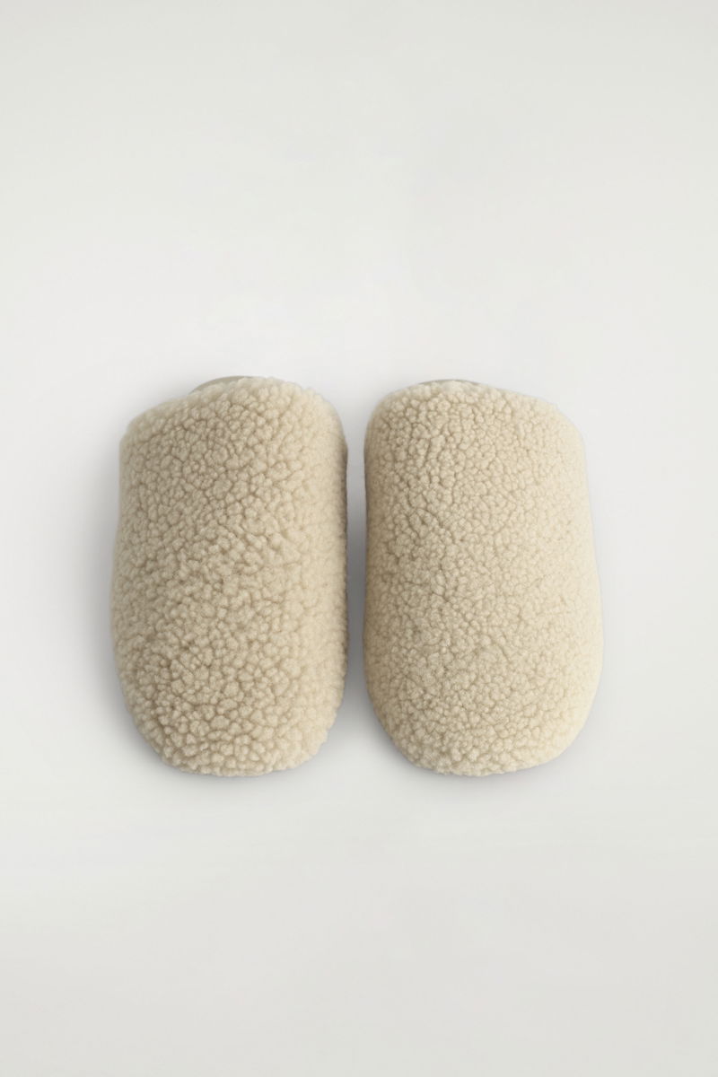 These modern mules are an indulgent way to accent an outfit. They're made from sumptuous shearling in a neutral white tone and set on padded non-slip soles for comfort. Style them into the evening or for moments of downtime.