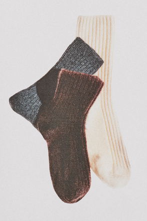 Offered in a muted ivory hue, these socks are knitted from a soft organic-cotton blend and feature a checked grid pattern with sheer lines. They'll lend subtle interest to your footwear.