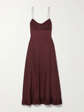 Offered in a vibrant red hue, this dress is suspended from slender straps that fasten into dainty bows at the back. It's crafted from cotton-jersey that has a soft hand feel and designed with a shirred bodice that gathers delicately at the waist.