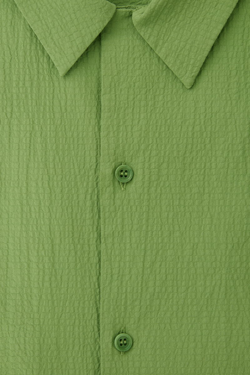 This short-sleeved shirt is the perfect choice for warmer days. Designed in a fresh green shade, it's crafted from cotton-seersucker, a naturally puckered fabric known for its breathability. The pointed collar, front patch pockets and buttoned placket make it a true classic.