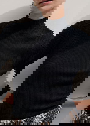 Crafted from traceable merino wool in dark brown, this long-sleeve, polo neck jumper is cut for a slim fit and elevated with pointelle detailing on the neck and shoulders.