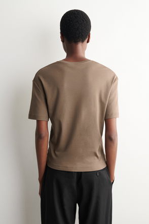 The COS womenswear collection is anchored by refined wardrobe signatures. Cut in a slim shape, this T-shirt is crafted from TENCEL™ Lyocell and merino wool-blend jersey that's naturally lightweight and supremely soft to the touch. It's finished with a crew neckline and three-quarter-length sleeves.