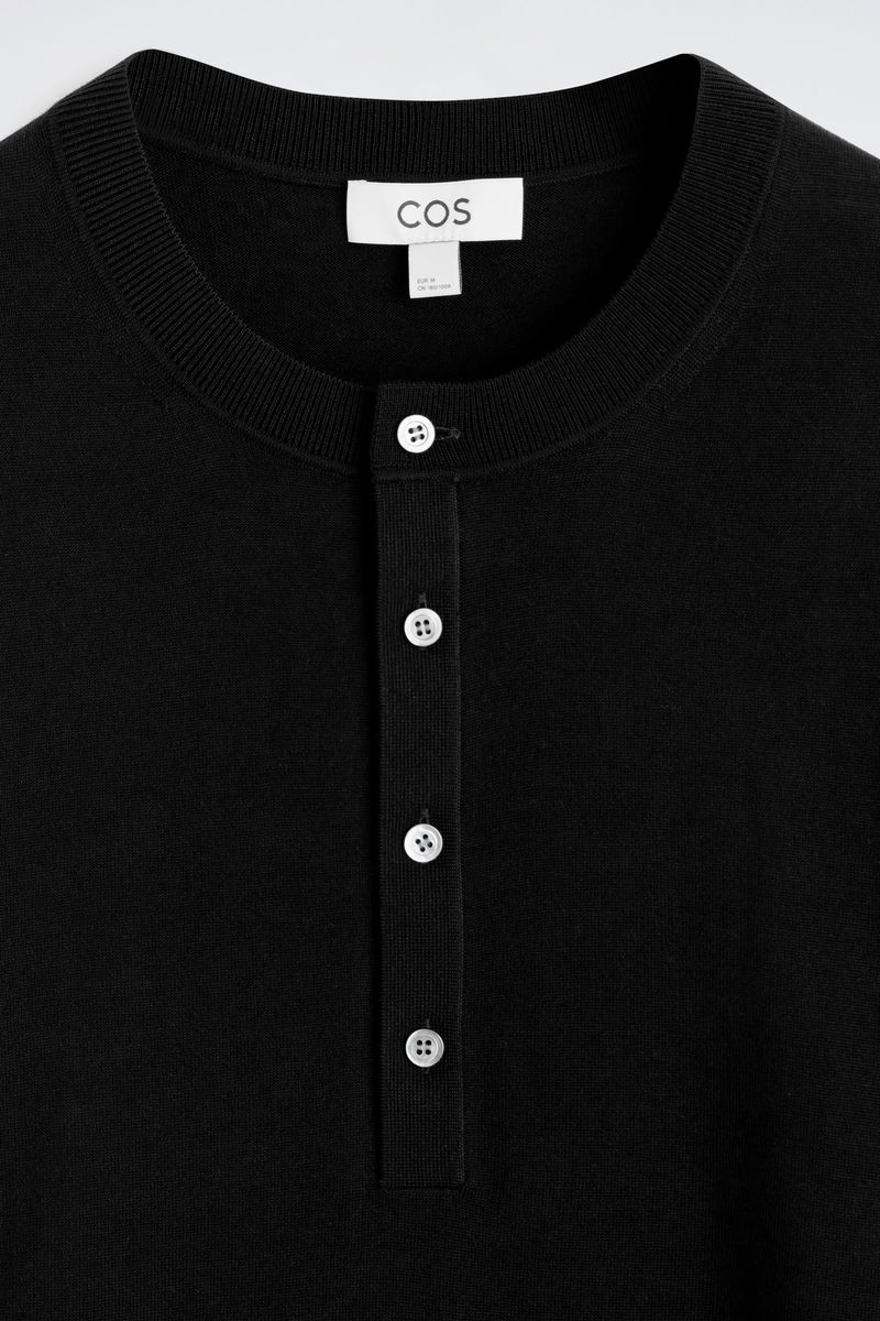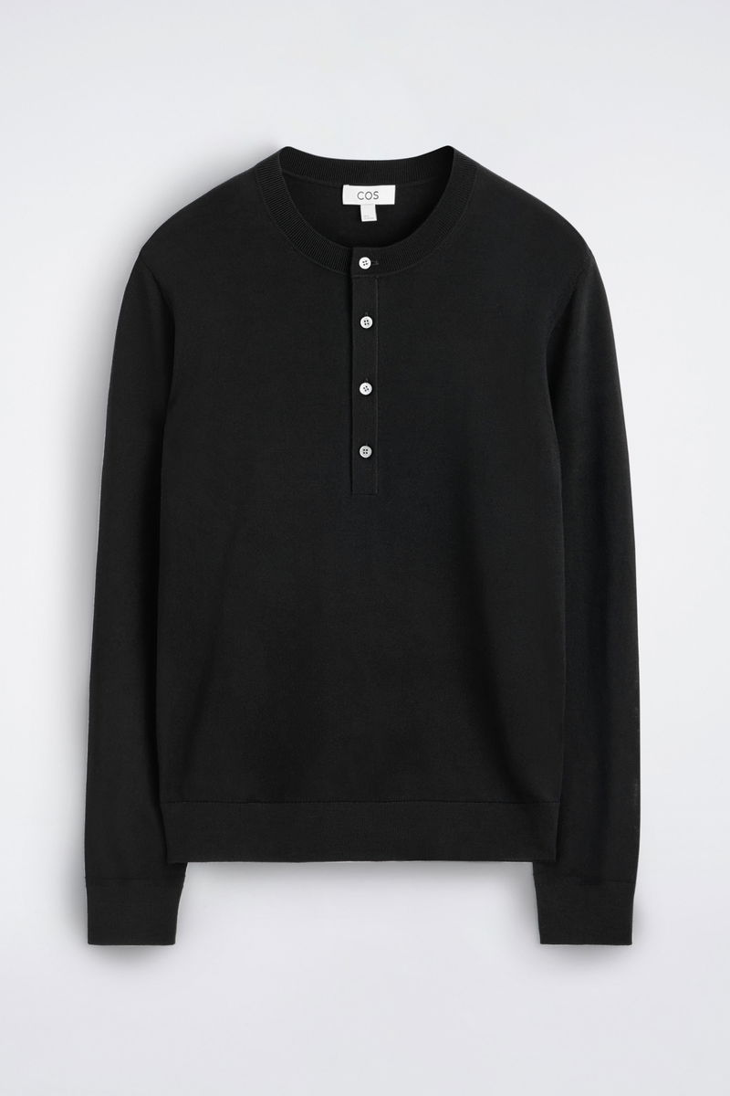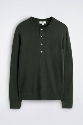 The COS menswear team are experts at creating perfected wardrobe staples. This long-sleeved Henley tee is knitted from premium merino wool and designed with neat seashell buttons and ribbed trims that hold their shape. You'll reach for it season after season.