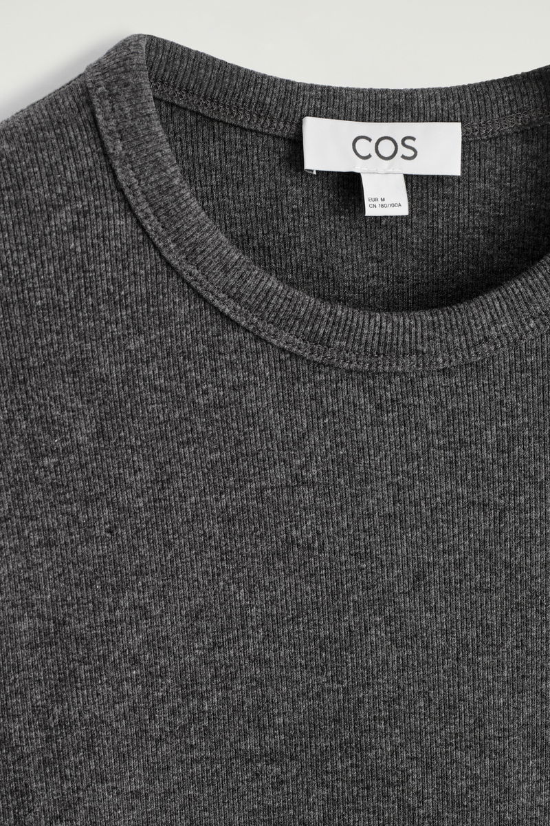 This season, the COS menswear team introduce a more streamlined cut to our collection of T-shirts. It's crafted from organic- and recycled cotton-blend jersey with a hint of stretch and finely ribbed for a close fit at the chest and sleeves. The slim shape will nicely contrast an oversized shirt or blazer.