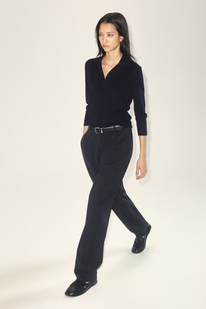 Autumn Winter 2025 takes the modern wardrobe to new heights: the epitome of quiet confidence. A hallmark of impeccable tailoring, these slim straight-leg trousers are made from premium wool-blend suiting cloth in a midnight-navy hue and shaped in a streamlined silhouette with sharp pressed creases. They're finished with a signature adjustable tab inside the waistband for a bespoke fit.
