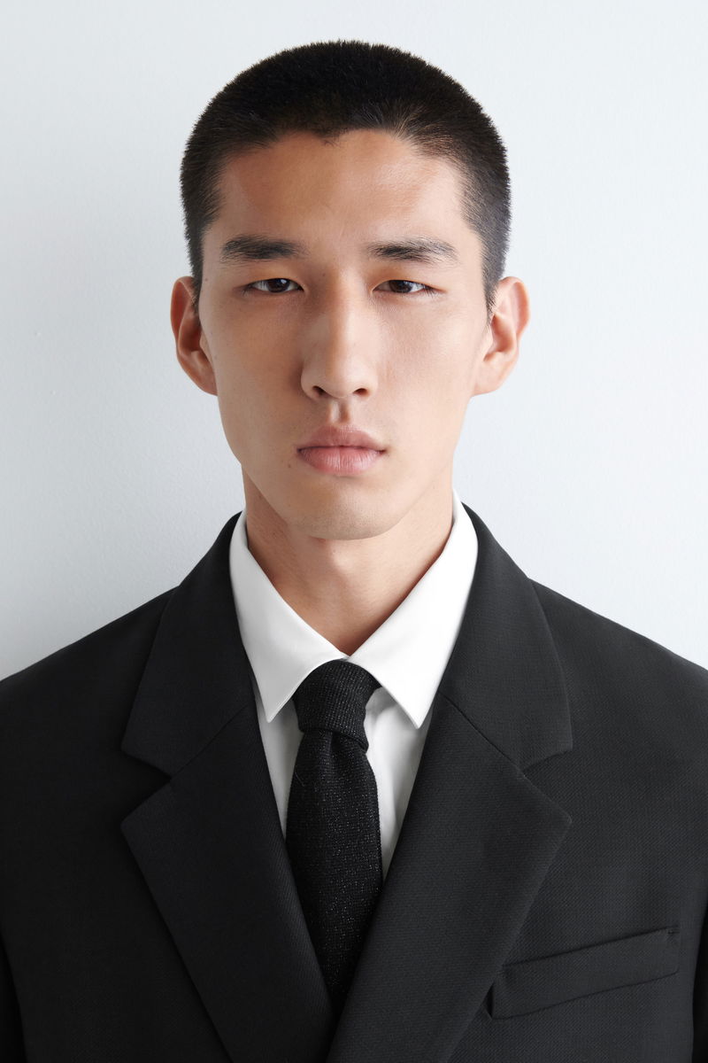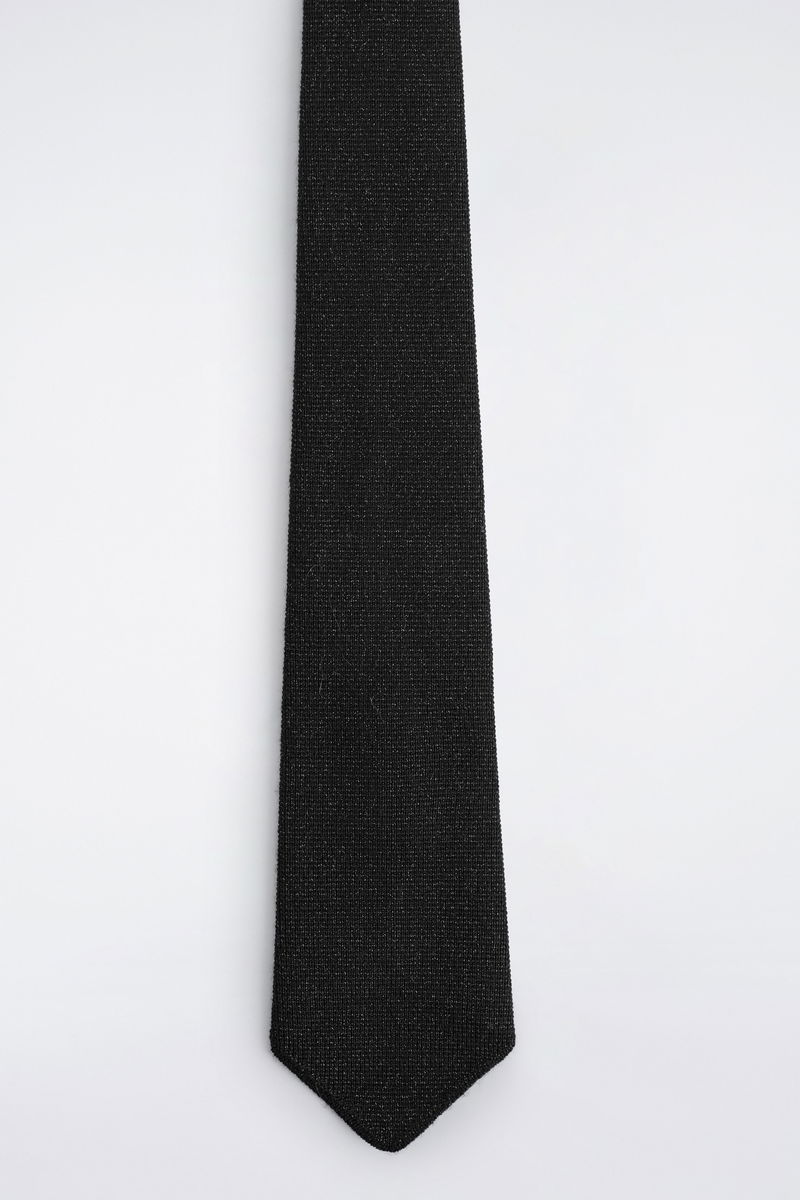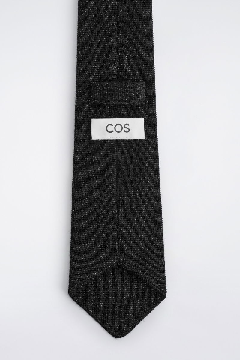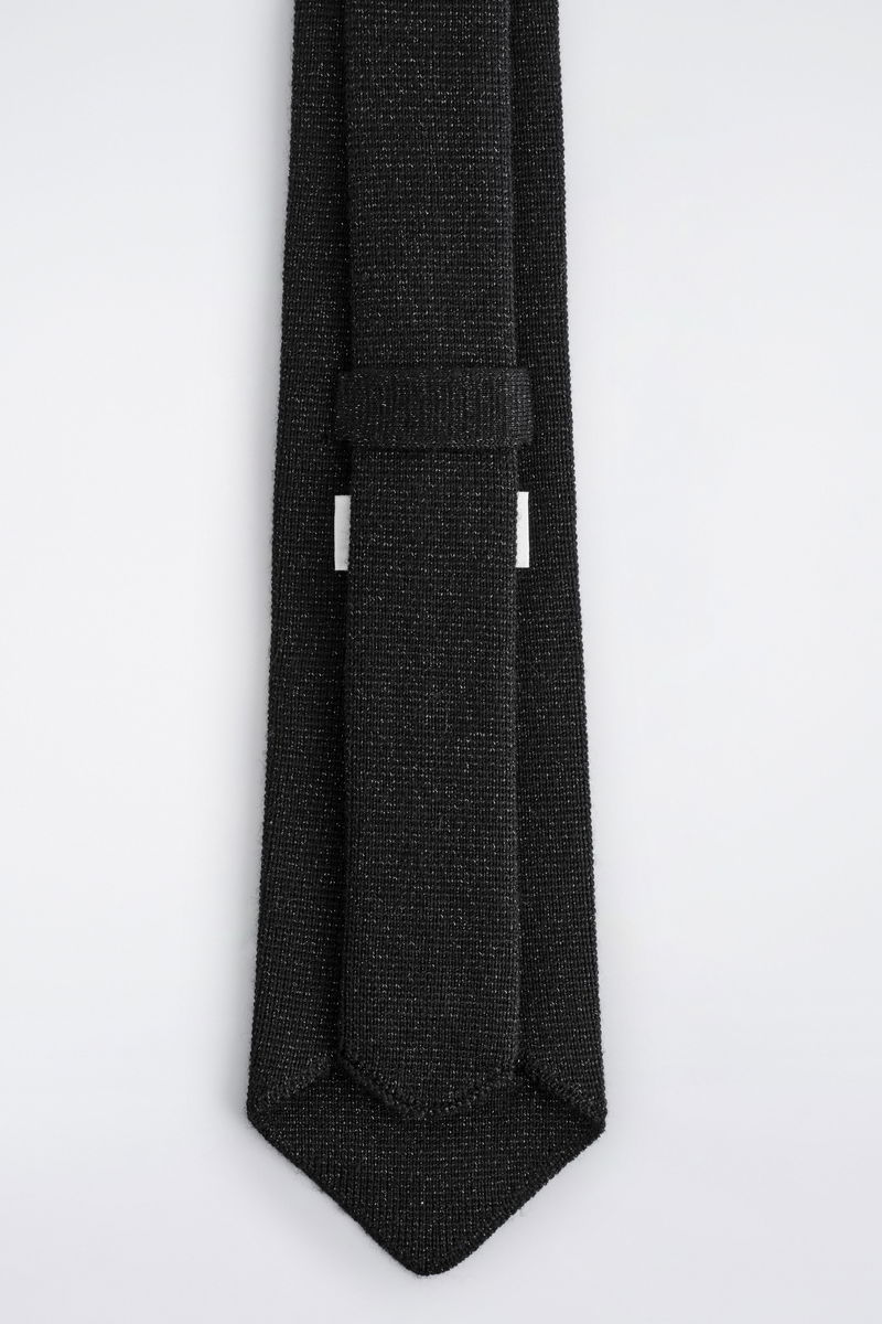 This refined piece proposes a modern take on the classic tie. It's knitted from premium merino wool and flecked with metallic fibres that subtly catch the light. It's a smart choice for soirée season.
