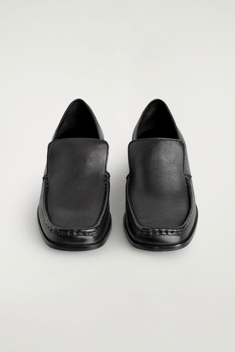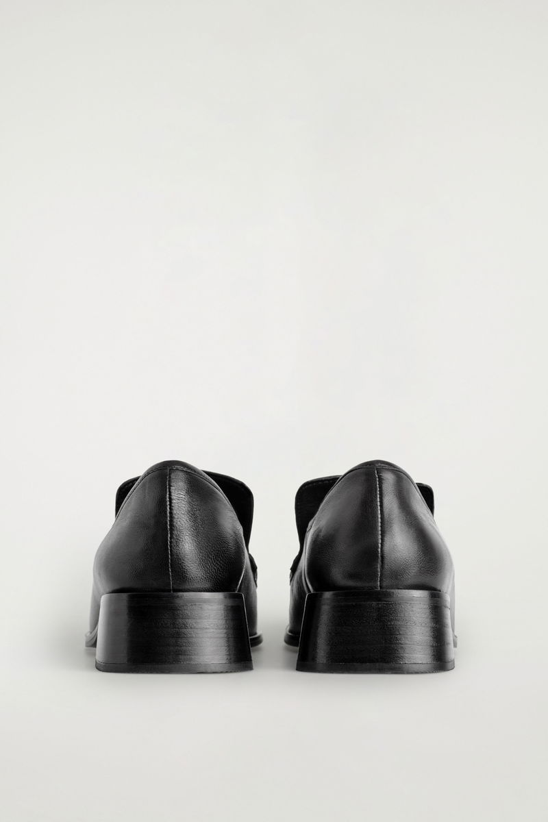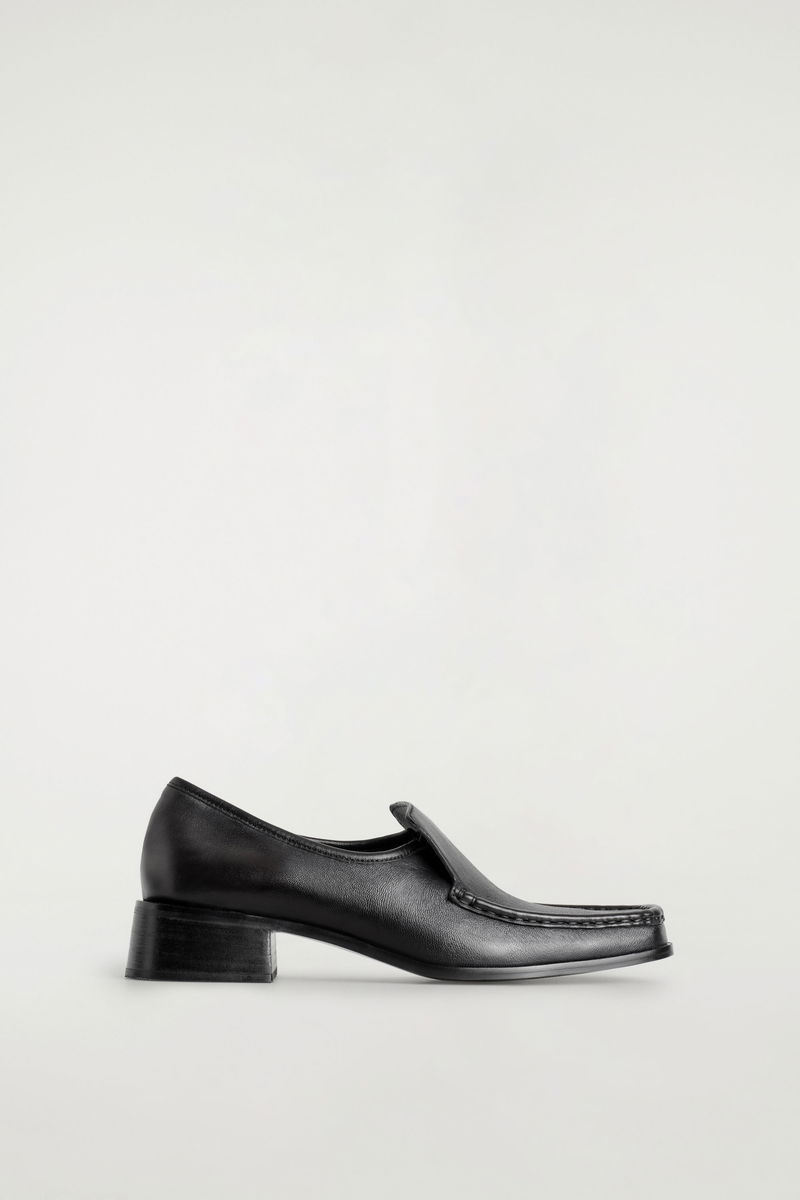 SQUARE-TOE LEATHER HEELED LOAFERS