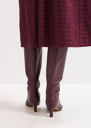 Defined by their angular shape, these modern knee-high boots are crafted from supple leather and feature sharp square toes and Cuban heels. Style them with a mini skirt or under wide-leg trousers.
