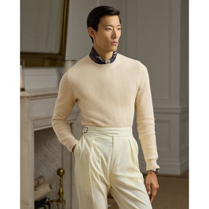 A casual style, this neat round-neck jumper is made from soft, lightweight cashmere in a tonal melange quality. Designed for a relaxed fit, it has graphic grown-on rectangle stitches at the neck and wide ribbed edges at the cuffs and hem.