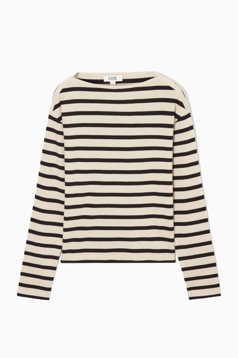Elevated essentials are a core part of the womenswear collections at COS. This long-sleeved top is crafted from pure organic-cotton jersey and designed with a boat neckline and horizontal Breton-style stripes. Wear it with anything from jeans to a maxi skirt.