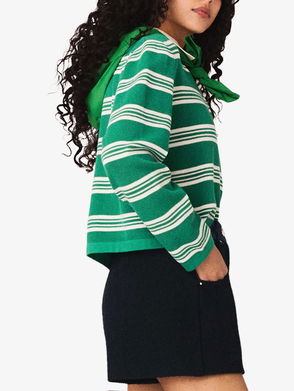 Rendered in a rich olive hue, this polo jumper is knitted with tactile mohair and merino wool and features a contrasting stripe that nods to sportswear codes. It's finished with an effortless open collar.