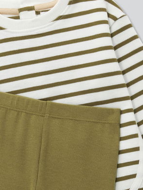 Essential relaxed wear, patterned with stripes. Made from cotton with added stretch, these leggings have an elastic waist for a comfortable and secure fit.