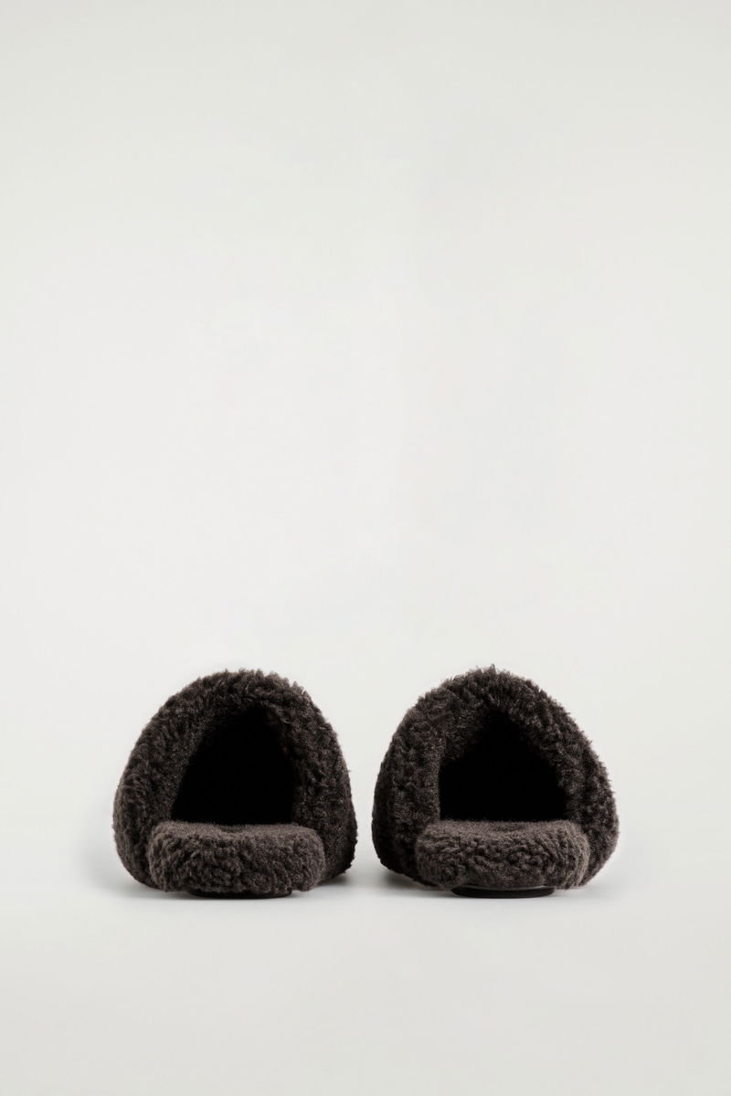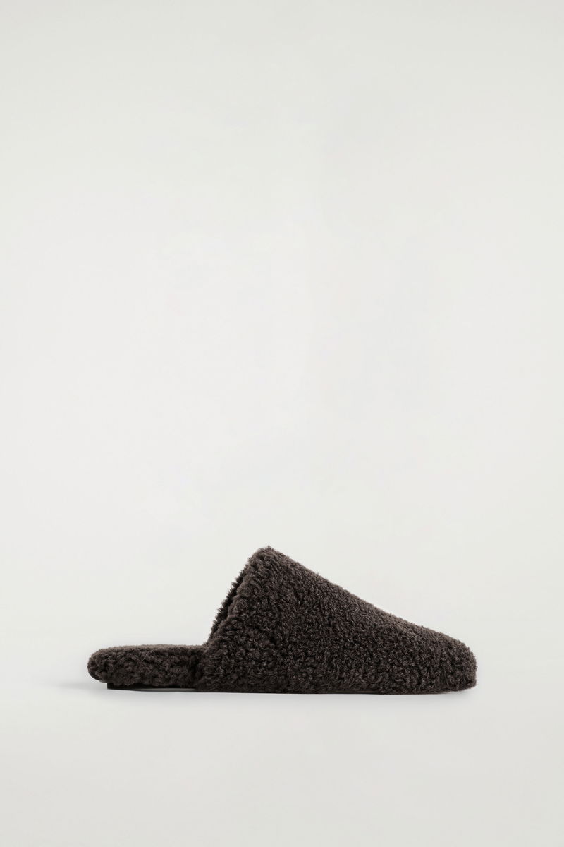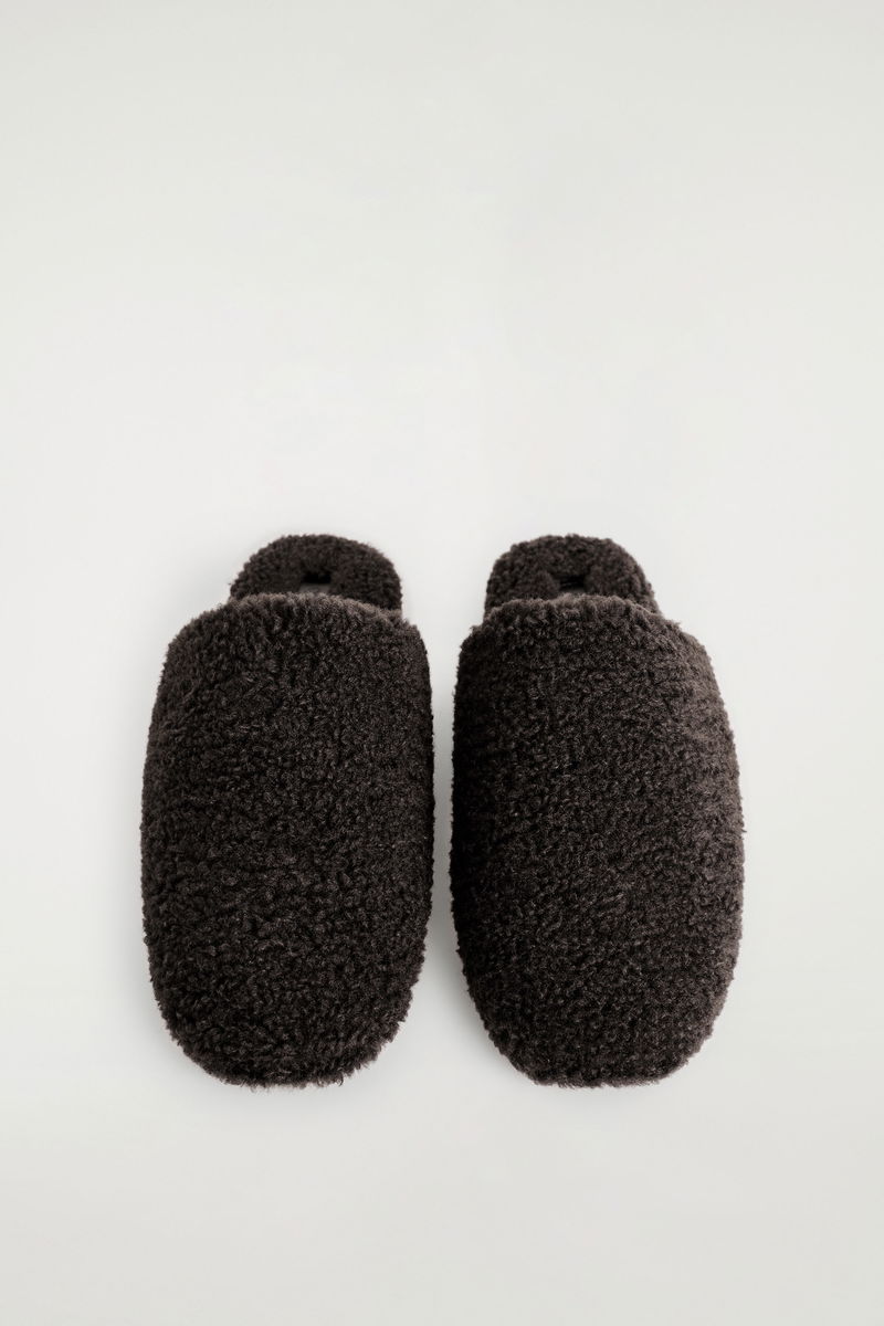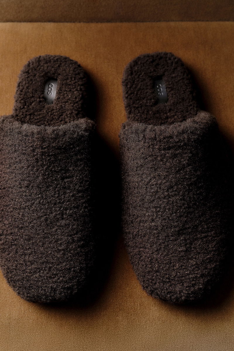 These modern mules are a refined way to introduce texture to an outfit. They're made from sumptuous teddy in a rich chocolate tone and set on padded non-slip soles for comfort. Style them with a tonal knit.