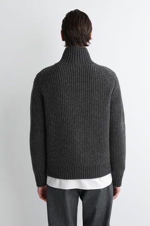 This season, the menswear team reimagine wardrobe signatures through richly textured fabrics. This modern bomber jacket is knitted using a technical stitch that contrasts with the clean shoulders and sleeves. It's kept otherwise classic with a silver-tone zip and ribbed collar, cuffs and hem.