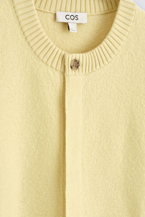 This piece is part of the ATELIER capsule; an exploration of the modern wardrobe, founded on the principles of luxury and exceptional design. Elevated wardrobe foundations are central to the ATELIER AW24 collection. Cut in a streamlined shape, this modern cardigan is designed with a V-neck and tonal buttons. Style it over tees or the matching polo shirt. This piece is rib-knitted from RWS-certified wool that's luxuriously soft and rich in texture. The knit is peppered with flecks of sand-toned cashmere that offset the chocolate hue. It's designed with a tonal hanger loop at the nape – a hallmark of the knitwear in the collection.