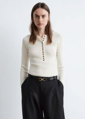 Inspired by the sartorial language of ballet, this body is cut in a form-fitting shape with narrow straps and a scooped neckline and back. Style it under the matching top. Offered in an adaptable fossil-grey tone, this piece is made from premium extra-fine merino wool that's knitted in an irregular ribbed pattern for subtle texture. The neckline and shoulder straps are bordered with tubular trims for a clean finish.