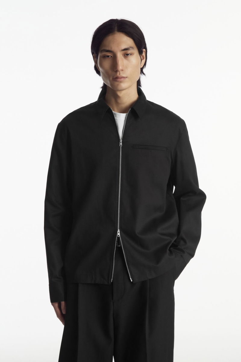 This pared-back shirt is our menswear team's modern interpretation of '60s Harringtons. It's crafted from softly structured TENCEL™ Lyocell and cotton-blend twill and cut for an easy-going shape, with considered design details like a pointed collar, clean welt pockets and functioning buttoned cuffs. Layer it over tank tops and tees, adjusting the double-ended zip to your preference.