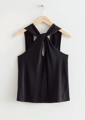 Asymmetric in shape, this top features a twisted detail that softly defines the waist. It's designed with a rounded neckline and crafted from soft cotton-blend jersey in a rich olive tone.