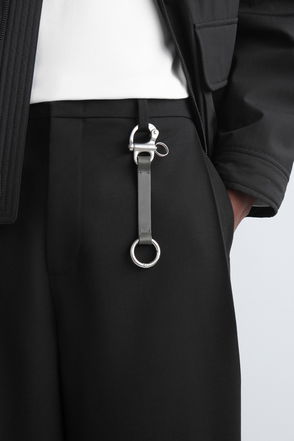 Suspended from a lanyard strap, this pragmatic key fob has a protective chrome-free leather cover that's bordered with chunky whip stitching. Style it around your neck or tie it onto a tote.