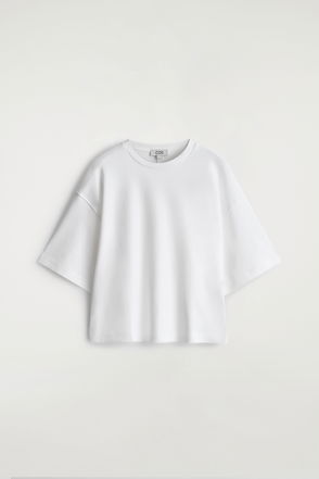 Made from organic cotton in crisp white, this long sleeve T-shirt has a slightly wider neckline that allows for limitless layering possibilities.