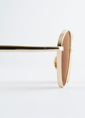 These oval cat-eye sunglasses are reminiscent of the noughties. They're designed with slender wire frames and pink tinted lenses, both of which are complemented by the brushed silver-tone hardware.